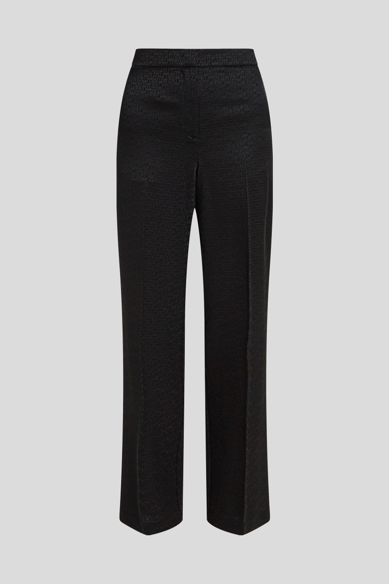 Női karcsúsított szabású nadrág. Klasszikus kialakítás magas derekkal és rejtett nadrágzáródással, amelyet oldalsó behúzott és hátul zsebes részletek egészítenek ki, valamint teljes terjedelmű jakárd mintázat. Az anyagösszetétel garantálja a tökéletes rugalmasságot, könnyedséget és nagyon kellemes érzést viselés közben. Kiválóan kombinálható darab, amely stílusosan kiegészíti sportosan-elegáns és formális megjelenésedet.