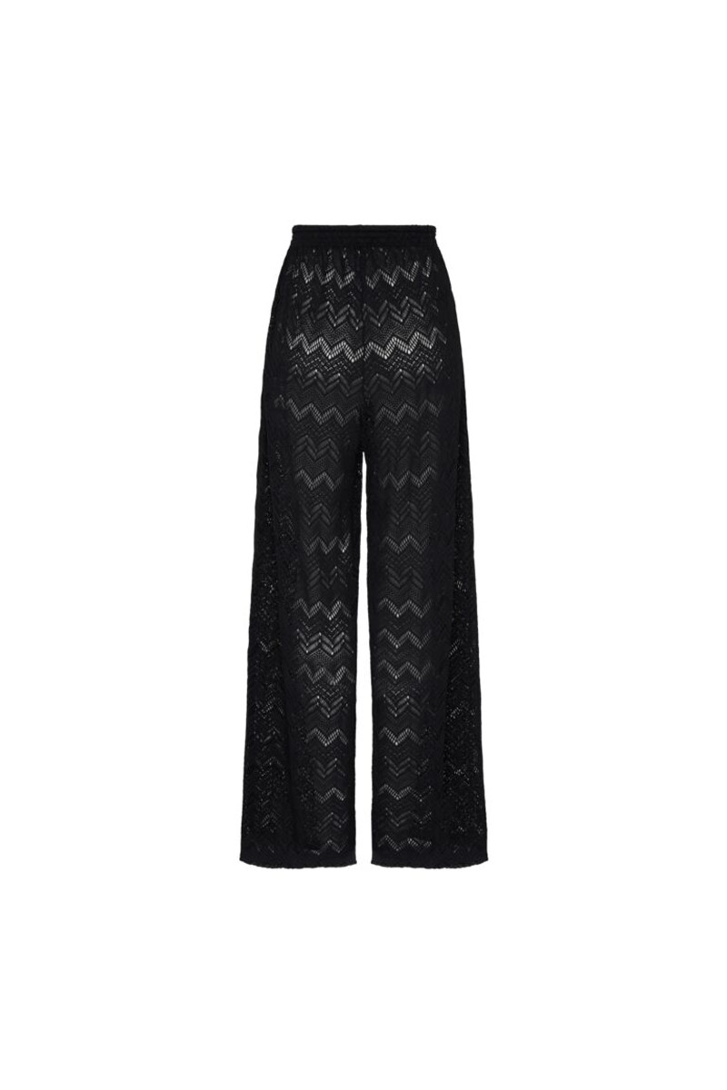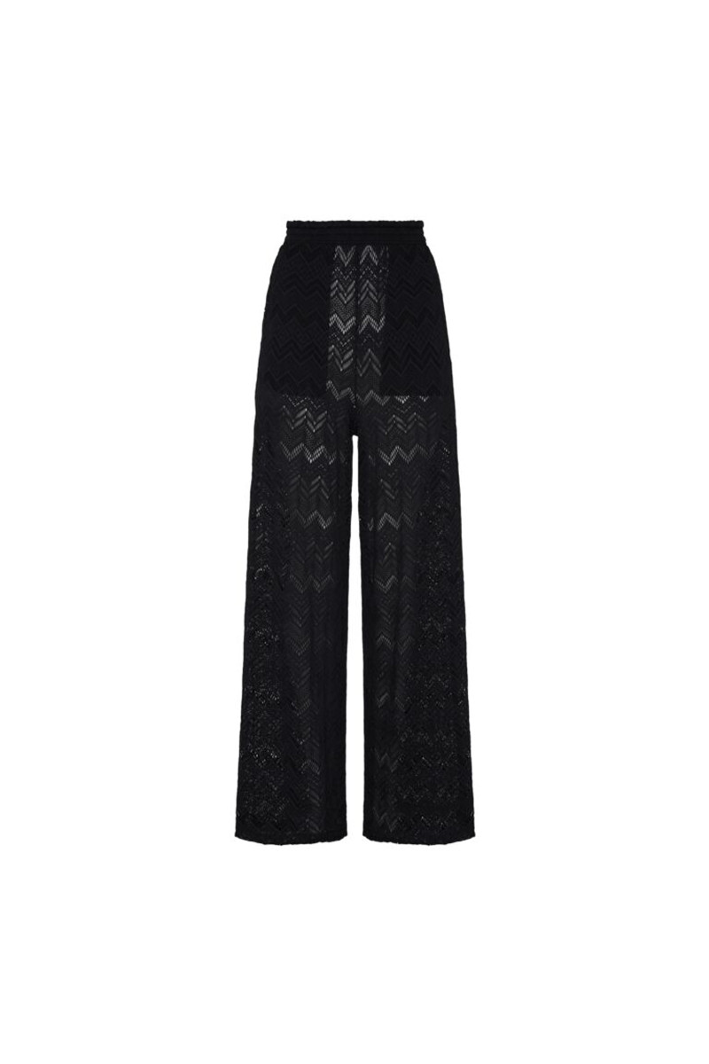Csipkés női strandnadrág, amely lezser szabásának köszönhetően a kényelem és a stílus megtestesítője. Szintetikus anyagból készült, amely légáteresztő képességet és kellemes érzést garantál viselés során - így tökéletes választás a tengerparti forró napokon. A lezser szabású, rugalmas derékkal ellátott nadrág két praktikus oldalzsebbel van kiegészítve. Elengedhetetlen részévé válik strandruházatának, amely a kényelmet modern dizájnnal ötvözi.