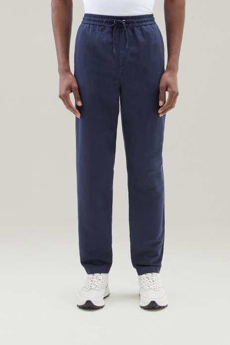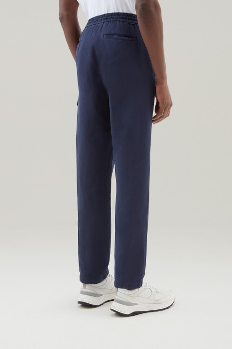 NADRÁG WOOLRICH COTTON LINEN PANT MARITIME BLUE