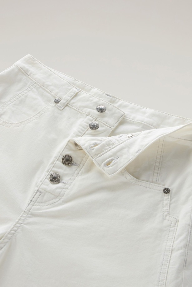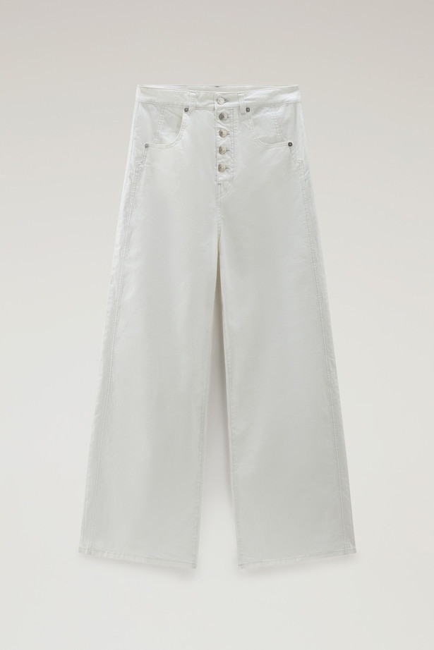 Modern női nadrág, amely szélesebb szárral és kissé magasabb üleppel van ellátva. Gombos rögzítéssel, amely összhangban van a zsebekkel és a nadrágon található rafinált varrással. Bőrből készült címkével a hátsó zseb felett, amelyen dombornyomott márkajelzés található. A stílusos megjelenésű, mégis sokoldalúan felhasználható darab anyaga kellemesen puha pamutszálból készült, hozzáadott elasztánnal, amely biztosítja, hogy az anyag rugalmas és kényelmes viseletet biztosít. Praktikus alapja a lezser, ugyanakkor elegáns öltözéknek, amelybe garantáltan beleszeret majd.
