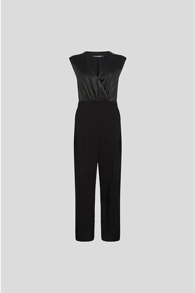 OVERÁL KARL LAGERFELD FAUX LEATHER ZIP JUMPSUIT BLACK