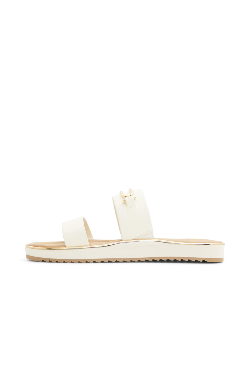 Napfényben kifakított fehér pántok fogják közre a laza, csiszolt sziluettet, amely enyhén bordázott talpakon nyugszik, kényelmesen párnázva minden lépést, így könnyedén mozogsz a galéria szombaton át a városi kávézókig. Párosítsd len rövidnadrággal a piaci sétákhoz, vagy csúsztasd fel egy könnyed midi ruhával, amikor a tetőtéri koktélok csillagos beszélgetésekbe mennek át.