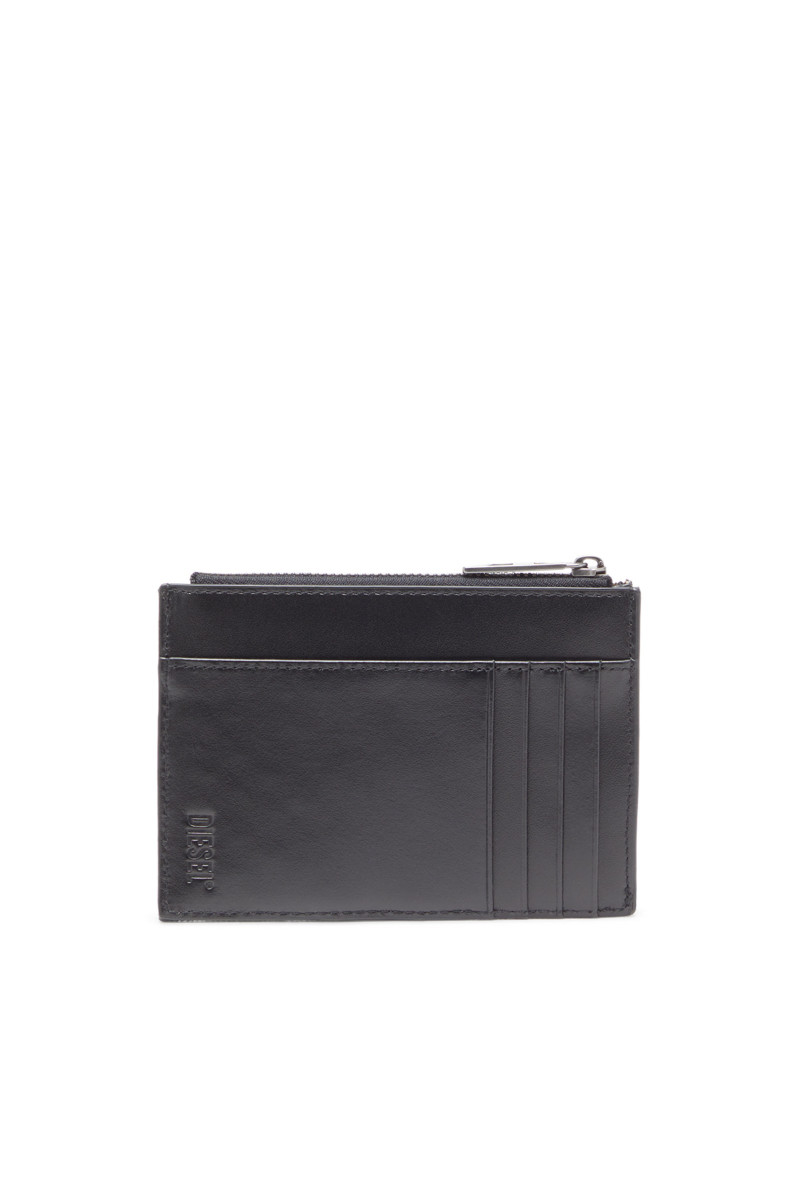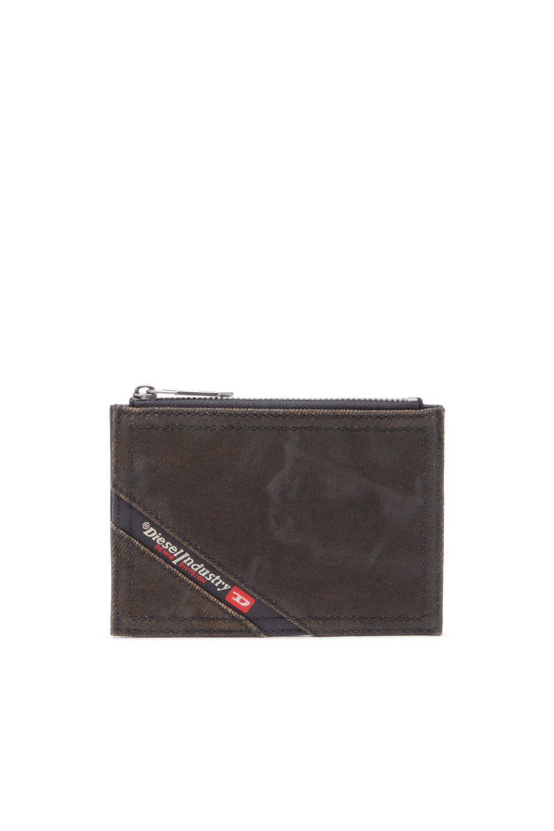 Vékony férfi kártyatartó tárca - cardholder. Denim anyagból készült. A Diesel DNA szövet remekül megmunkált és speciális technika felhasználásával készült, így egyedi, kopott hatást kelt. Kontrasztos hátoldalán több kártyarekesszel ellátott. Ikonikus márkajelzéssel díszített, amely a Diesel farmerek kisméretű ötödik zsebén is megtalálható. A felső, cipzáras rekesz egyik oldalán speciális részlettel, amely könnyebb hozzáférést biztosít az érmékhez. Összesen öt kártyarekesszel.