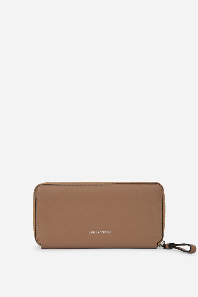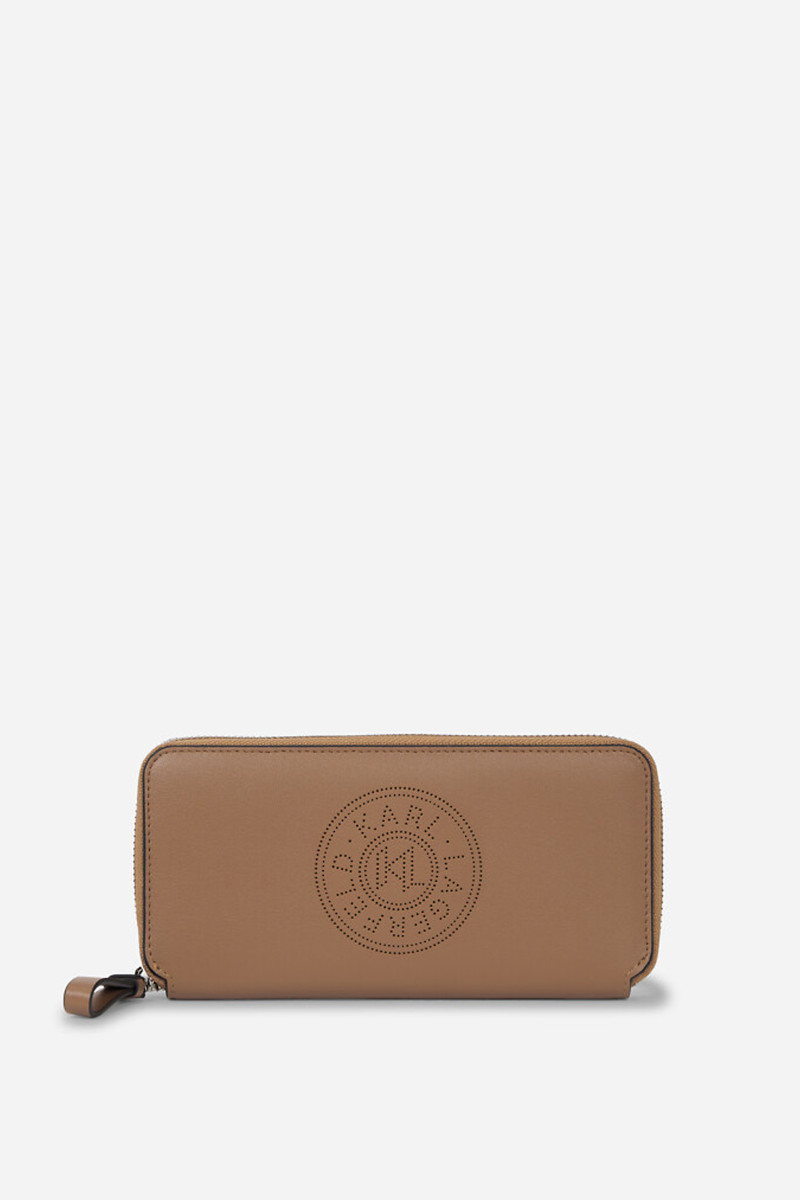 Női pénztárca, amely sima, prémium minőségű marhabőrből készült és perforált Karl Circle logóval van díszítve az elülső oldalán. Az elegáns, téglalap alakú és cipzárral záródó darabot egy cipzáras belső érmezseb és több kártya-, valamint bankjegyrekesz egészíti ki. Eredeti ajándék ötlet és rendkívül stílusos kiegészítő, amely a Karl Lagerfeld márka minden rajongóját örömmel tölti majd el.