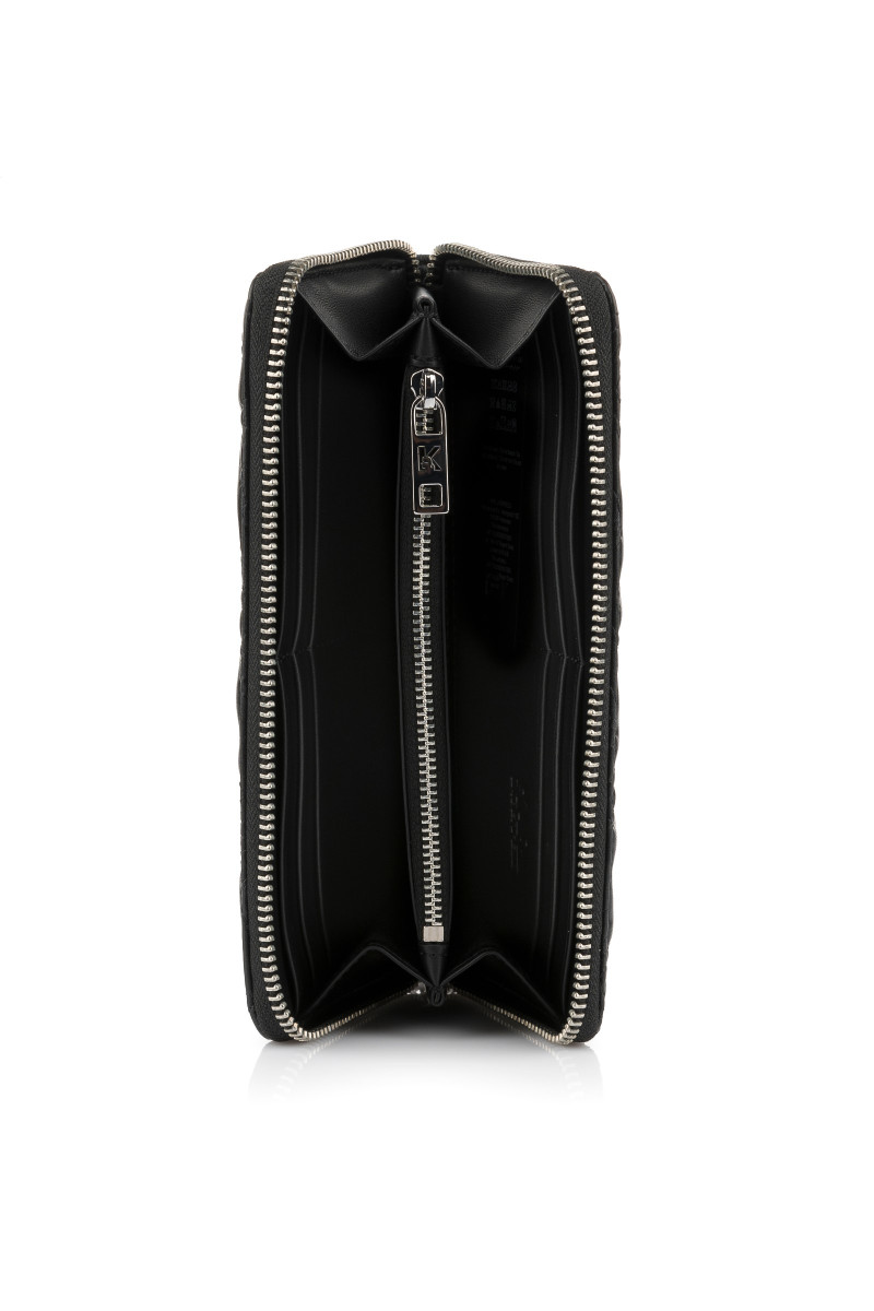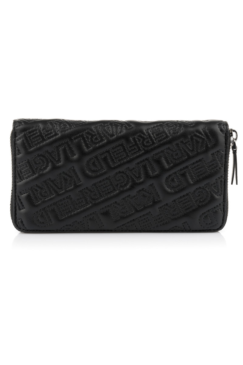 Részben újrahasznosított szintetikus bőrből készült női pénztárca, amely exkluzív megjelenésével és sokoldalú felhasználhatóságával elvarázsolja majd Önt. Az elegáns dizájnú darabot teljes egészében steppelt Karl-logó minta egészíti ki. Kétirányú cipzárral, tágas belső térrel és tizenkét kártyarekesszel, bankjegyrekesszel, valamint cipzárral záródó érmezsebbel ellátott. Tökéletes ajándék ötlet és rendkívül stílusos kiegészítő, amely a Karl Lagerfeld márka minden kedvelőjét elvarázsolja majd.