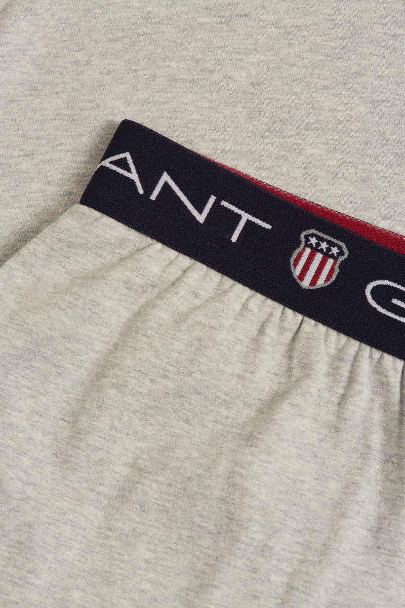 Férfi pizsamanadrág, amely térdig érő, laza szabású lábszárakkal van ellátva. Elasztikus és nagyon puha, rugalmas derékpánttal, amelyen kontrasztos márkafelirat és ikonikus Gant logó található. Két oldalsó és egy hátsó zsebbel, praktikus gombos záródással az elülső részen. A prémium minőségű pamut jersey rendkívül kellemes tapintású, puha, légáteresztő, mindenekelőtt azonban rendkívül kényelmes viseletet biztosít. Szabadidős pólóval kombinálva ideális öltözéket hozhat létre, amelyet különösen a pihenés pillanatai során fog majd értékelni.