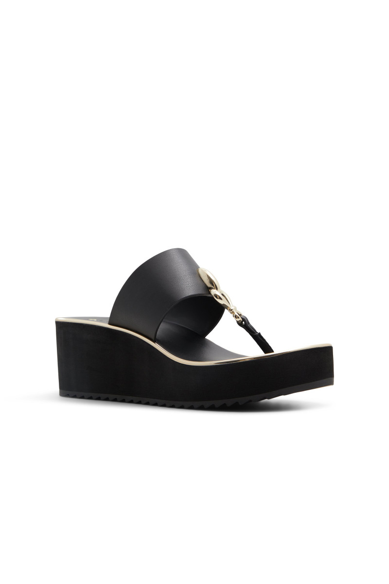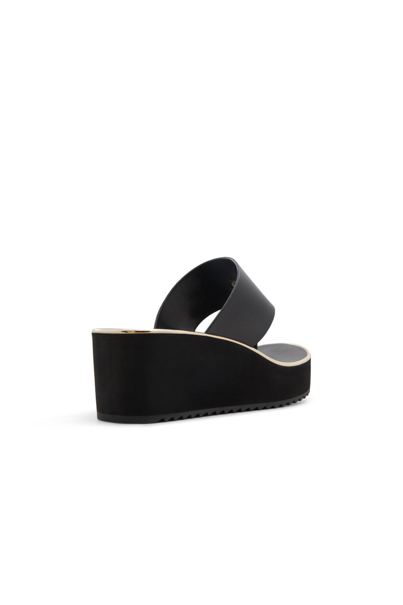 A formás ékplatform megemeli a lábakat és a kedélyeket, míg a vajpuha fekete bőr és a csiszolt gyűrű díszítés azonnali vakációvá varázsolja ezt a laza, belebújós cipőt, melynek alján tapadós gumi található. Párosítsd légies lenvászon nadrággal piacozáshoz, vagy váltogasd selyem mini szoknyára, amikor a naplementés koktélok csábítanak.