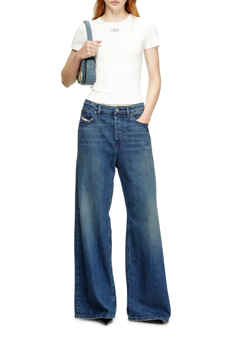 Női rövid ujjú póló. Testhez simuló, derékig érő slim fit szabás. Készült rugalmas, sima pamutból, ami kényelmet és könnyű karbantartást biztosít. A mellkason középen az ikonikus Oval D logó díszítéssel van ellátva, ami beöntési módszerrel készült és fémplakett hatást kelt. A modell S méretet visel és 175 cm magas. A méret a megszokott jelölésnek megfelel, választáskor válaszd a szokásos méretedet.