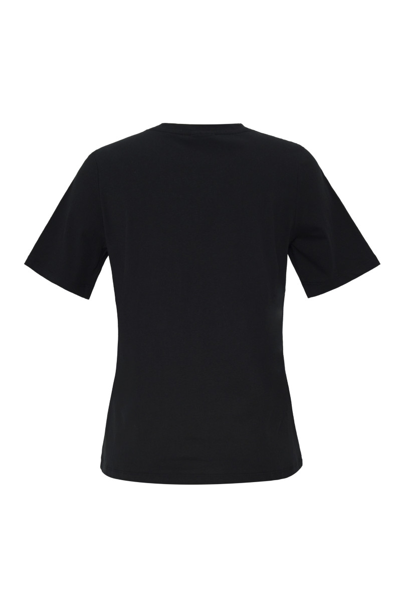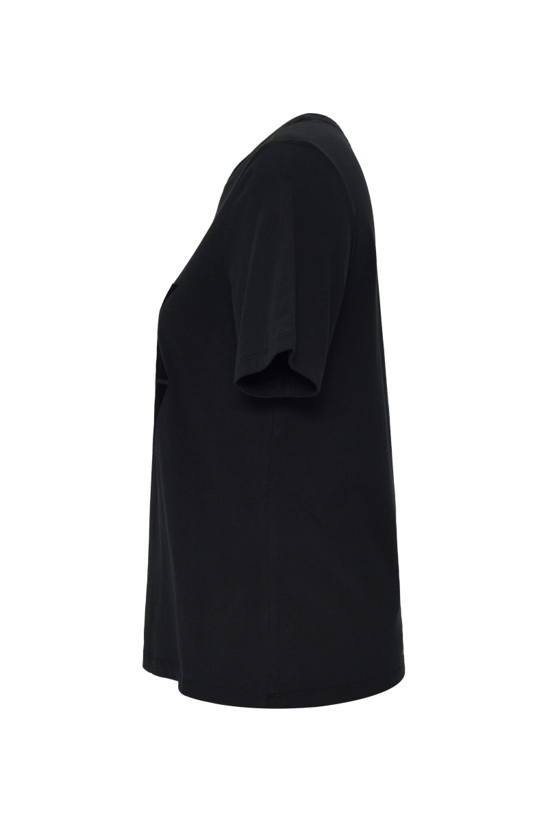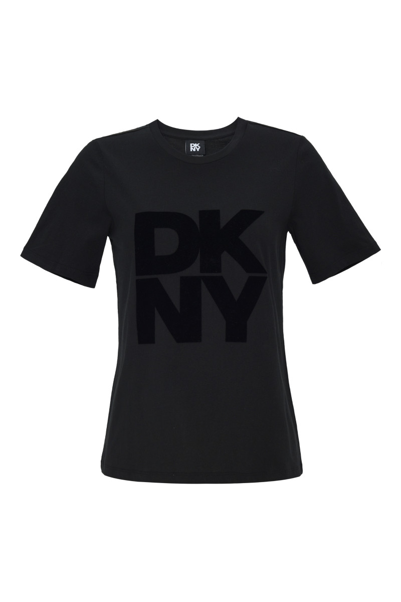 Rövid ujjú női póló. A kerek nyakkivágással ellátott, egyenes szabású darabot a mellkason tonális, bársony DKNY logó egészíti ki. A prémium minőségű pamutból készült kötött anyag maximális légáteresztést, kellemes viseletet és könnyű karbantartást biztosít. Remekül kombinálható és praktikus darab, amely stílusosan feldobja majd lezser ruhatárát.