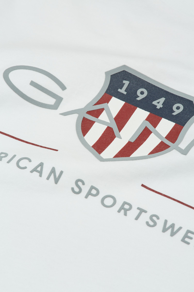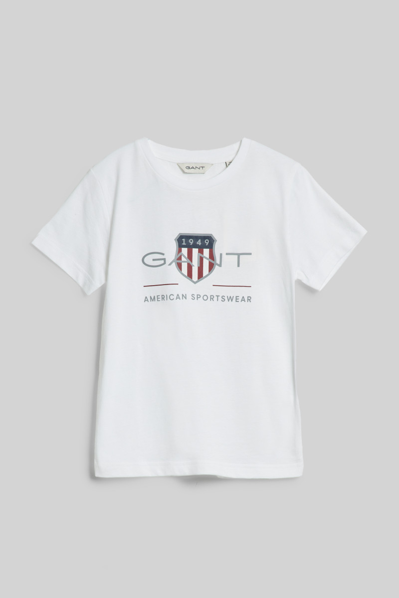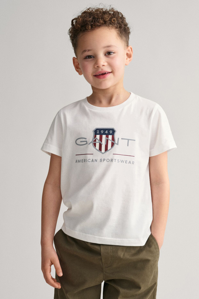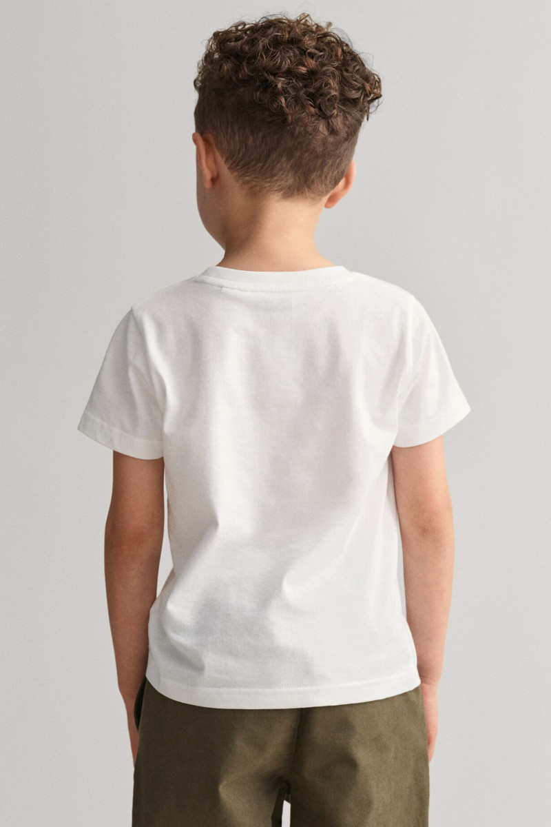 Egyenes szabású gyermek póló, amely kerek nyakkivágással és rövid ujjakkal van ellátva. Domináns, ikonikus Gant logóval a mellkason. A kellemesen puha jersey organikus pamutszálból készült, amely egyedülálló légáteresztő képességet biztosít és sokáig megőrzi eredeti színét és alakját. Rendkívül kényelmes érzést garantál viselés közben. Stílusos megjelenésű, sokoldalúan felhasználható darab, amely a szabadidős öltözékek kedvelt részévé válik.