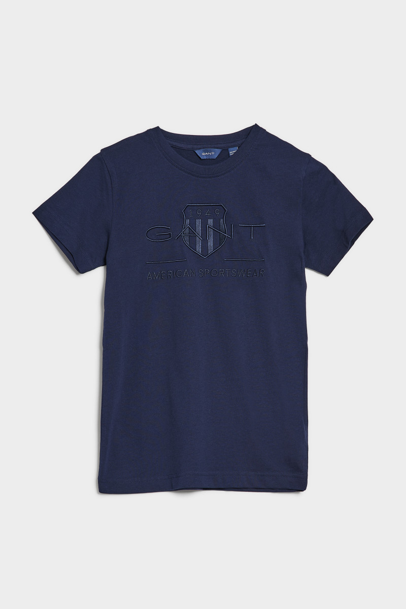 Gyermek póló kerek nyakkal és rövid ujjakkal. Az egyszínű, bordázott nyakrészen szegéllyel ellátott dizájnt a mellkason a GANT logó tónusú hímzése egészíti ki. A 100% prémium minőségű pamut tökéletes légáteresztő képességet, maximális viselési kényelmet és könnyű ápolást biztosít. Tökéletesen kombinálható és praktikus, mindennapi viseletre alkalmas darab.