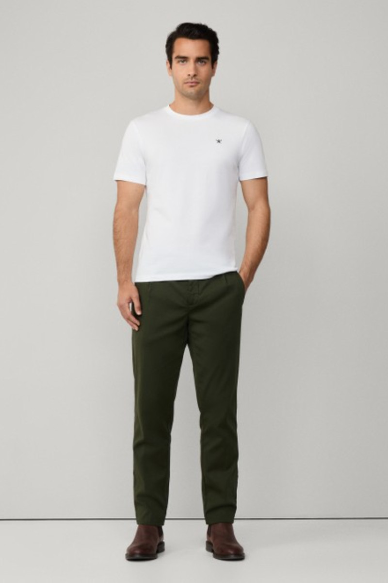 Férfi póló, amely egyenes szabású és rövid ujjakkal van ellátva. Kerek nyakkivágással és a mellkason a márka kontrasztos, hímzett feliratával. Anyaga prémium minőségű pamutszálból készült, így kellemesen puha tapintású, légáteresztő és nagyon kényelmes viseletet biztosít. A minőségi jersey előnye, hogy rugalmas és sokáig megőrzi eredeti alakját. Egyedi szabadidős darab, amely ízléses részévé válik a mindennapok öltözékének.