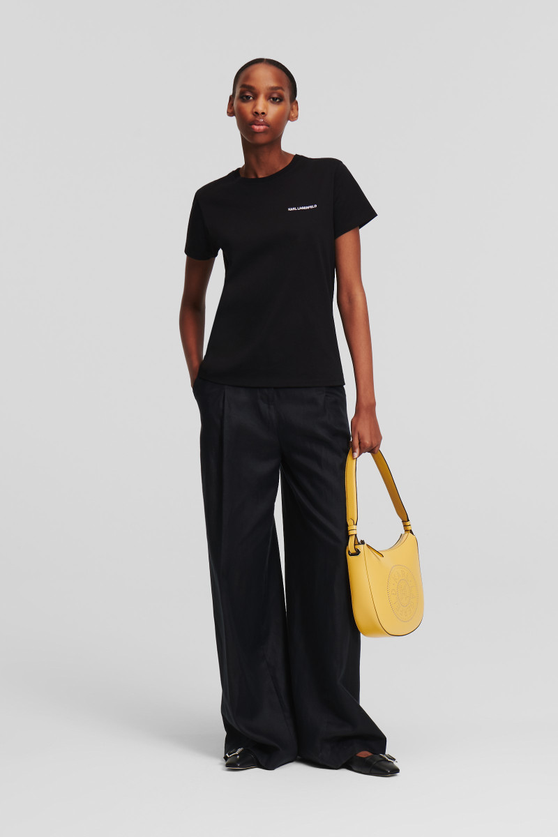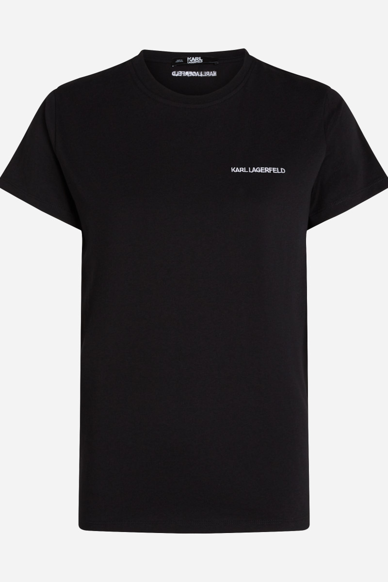 Egyenes szabású női póló, amely rövid ujjakkal és kerek nyakkivágással van ellátva. Hímzett Karl Lagerfeld logóval a mellkason és a hátoldalon. Anyaga 100%-ban prémium minőségű organikus pamutszálból készült, amely kellemesen puha tapintású, viselés során légáteresztő és rugalmasságának köszönhetően nagyon kényelmes. A kiváló minőségű jersey garantálja, hogy a darab sokáig megőrzi majd eredeti színét és alakját. Stílusos alapjává válik szabadidős öltözékének. Kombinálja az azonos kollekcióból származó melegítőnadrággal, ha tökéletes szettre vágyik.