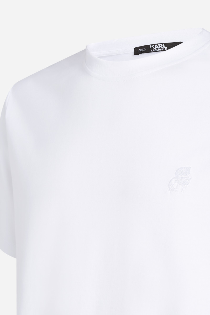 Egyenes szabású férfi póló, amely rövid ujjakkal és kerek nyakkivágással van ellátva. Decens, hímzett Karl Kameo logóval a mellkason. Anyaga 100%-ban prémium minőségű, organikus pamutszálból készült, amely kellemesen puha tapintású, viselés során légáteresztő és rugalmasságának köszönhetően nagyon kényelmes. A kiváló minőségű jersey garantálja, hogy a darab sokáig megőrzi eredeti színét és alakját. Stílusos alapjává válik szabadidős öltözékének.