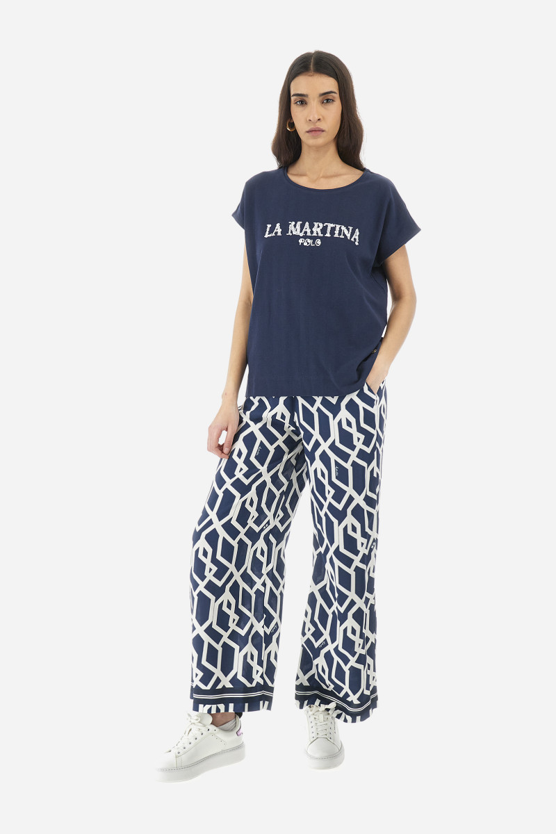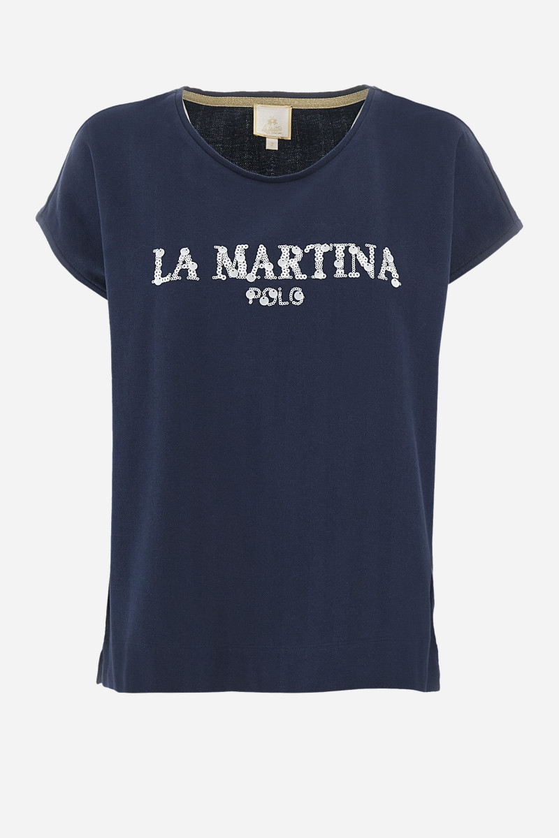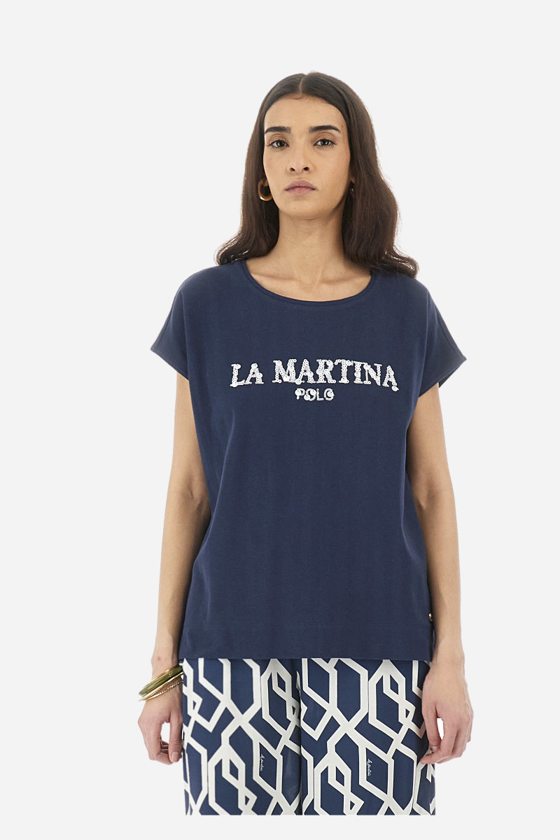 Rövid ujjú női póló, amely laza szabású. Kontrasztos La Martina logóval az elülső részén. A prémium minőségű anyagösszetétel tökéletes légáteresztést, maximális viselési kényelmet és könnyű karbantartást garantál. Népszerű darab, amely remekül mutat farmerrel vagy szoknyával kombinálva.