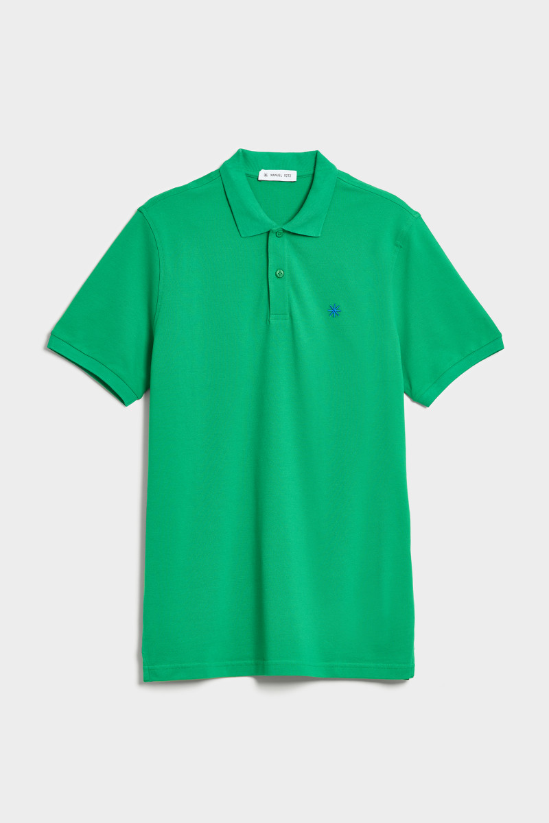 Férfi slim-fit pólóing rövid ujjakkal a Manuel Ritz kollekcióból. Gallérral és bordázott, elasztikus ujjszegéllyel. Elülső részén két, márkalogóval ellátott gombbal. Kontrasztos, hímzett, csillag alakú márkajelzéssel a mellkason, klasszikus hosszal és két oldalsó hasítékkal. A prémium minőségű, tiszta pamutból készült pique kötés könnyűséget, puhaságot, rugalmasságot és tökéletes légáteresztő képességet garantál viselés közben. Praktikus, időtálló, sokoldalúan felhasználható darab, amely minden sportos, ugyanakkor lezser öltözékének nélkülözhetetlen részévé válik.