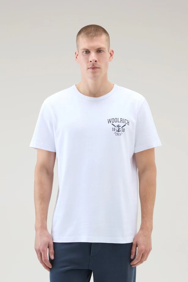 Egyenes szabású, rövid ujjú férfi póló, amely kerek nyakkivágással van ellátva. A mellkason lévő márkafeliratot a márka alapítási éve és szezonális tengerész témájú grafika egészíti ki, amelynek színe kontrasztban van a melegítő felső alapjául szolgáló jersey színével. Anyaga kellemesen puha és tökéletesen légáteresztő prémium minőségű pamutszálból készült, amely viselése során rendkívül kényelmes. Sokoldalú, stílusos megjelenésű alapdarabja a szabadidős öltözéknek.