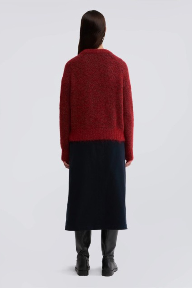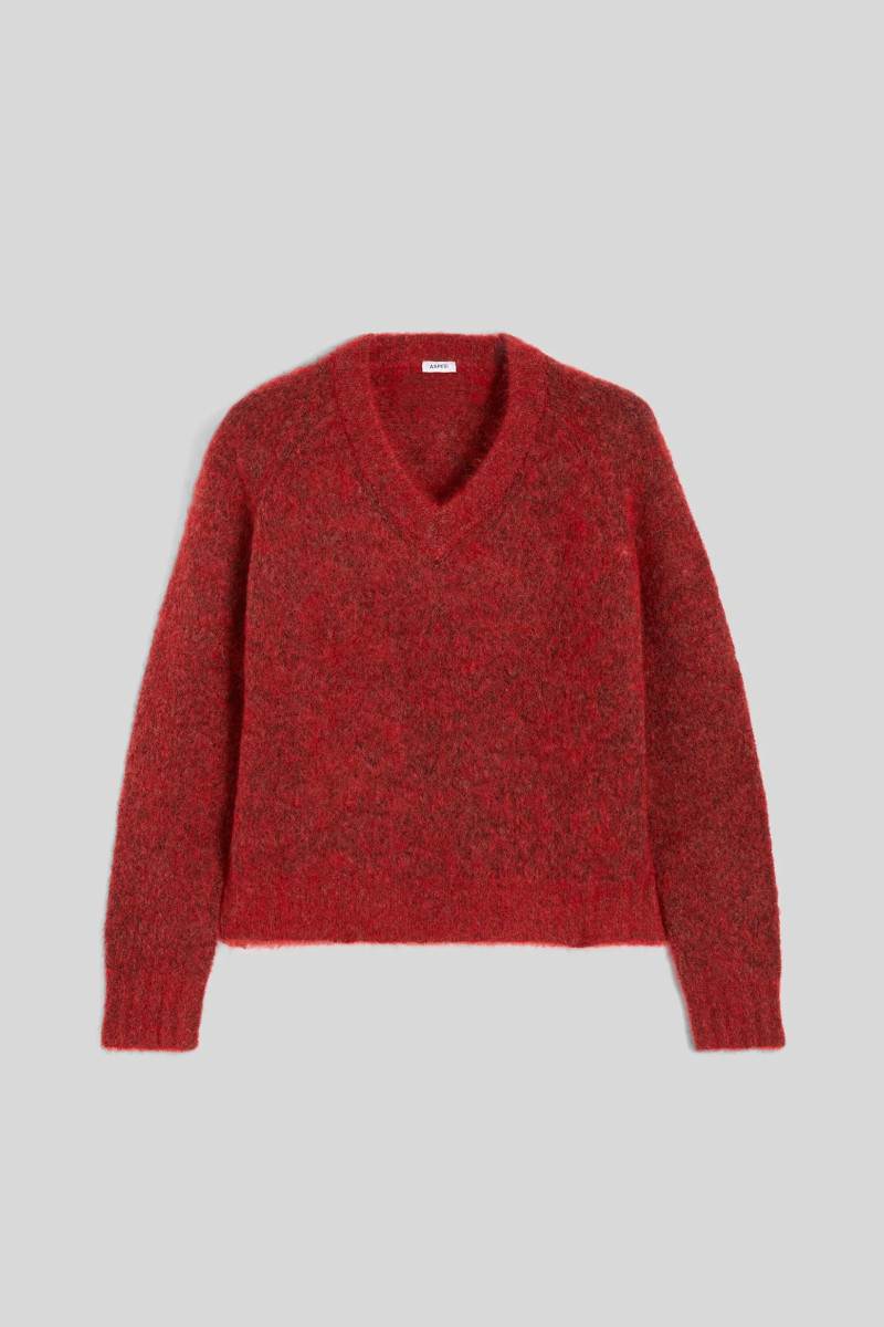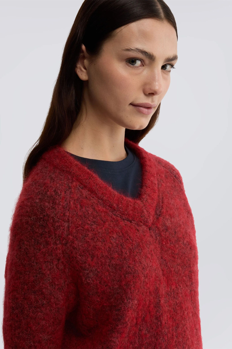 Női pulóver kényelmes mohér-gyapjú keverékből. A klasszikus V-kivágású design mellé ribizli szegély került a nyaknál, a deréknál és a raglán ujjakon. A melírozott kötött anyag kiváló az anyagösszetételnek köszönhetően, biztosítva a tökéletes légáteresztő képességet, melegséget és kellemes viseletet. A pulóver könnyű, nem gyűrődik és nem szívja be a szagokat. Kiválóan kombinálható darab, ami stílusosan kiegészíti a sportosan-elegáns megjelenésedet.