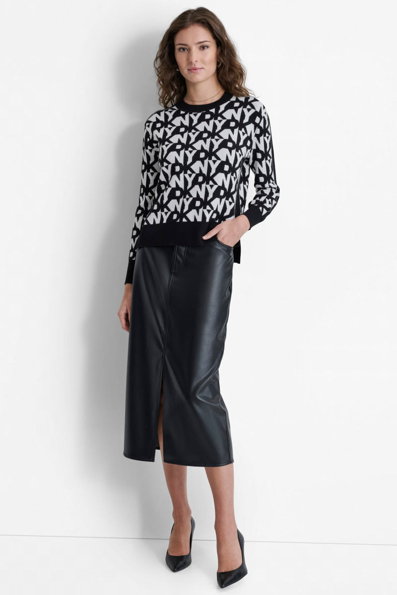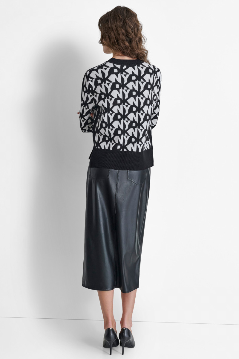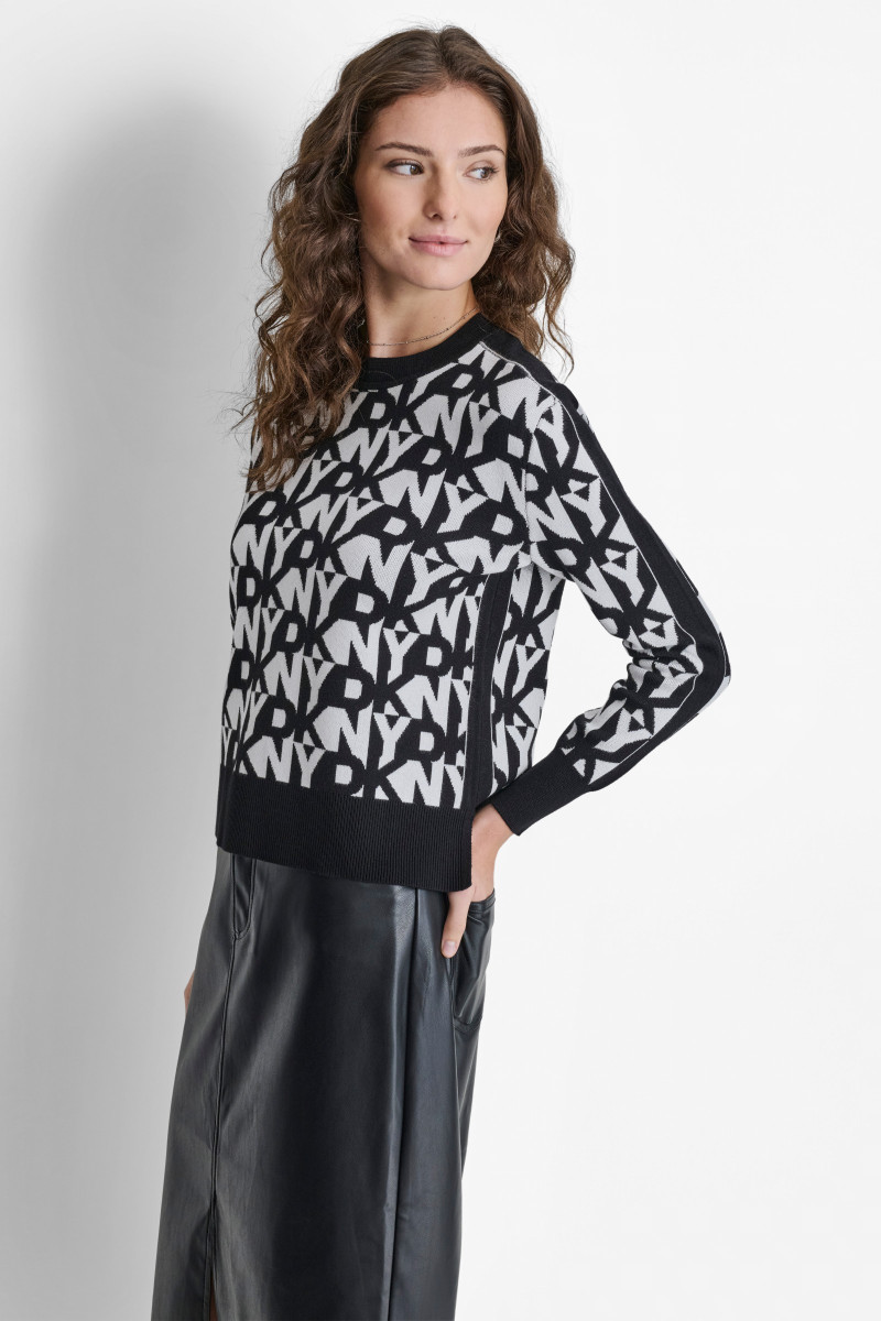 Női egyenes szabású pulóver, amelyet kontrasztos DKNY logóminta díszít jacquardból. A nyaknál, a deréknál és az ujjaknál bordázott szegéllyel ellátott, sportosan-elegáns kialakítást az oldalsó díszes hasítékok egészítik ki. A sima és folyékony kötött anyag tökéletes puhaságot, könnyűséget és maximális viselési kényelmet garantál. Nagyon praktikus és egyben ötletes darab, amely stílusosan feldobja a ruhatárát.
