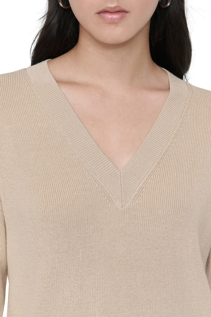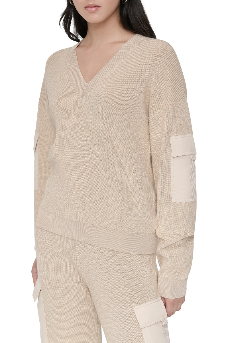 PULÓVER DKNY L/S VNCK SWTR W/ SAT CHINO KHAKI