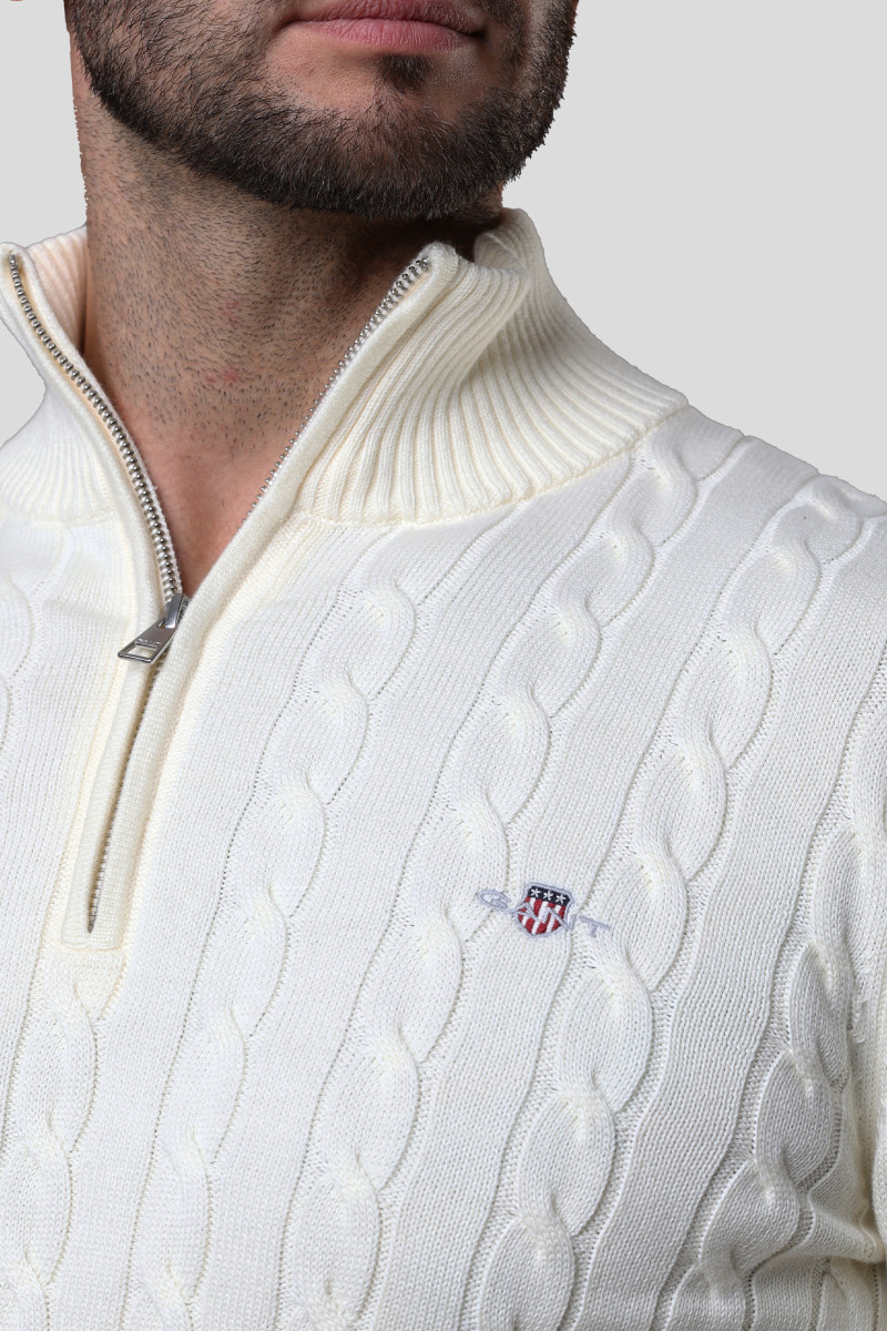 PULÓVER GANT COTTON CABLE HALF ZIP CREAM