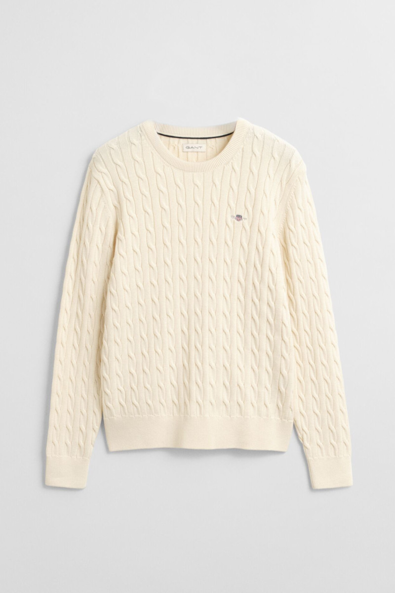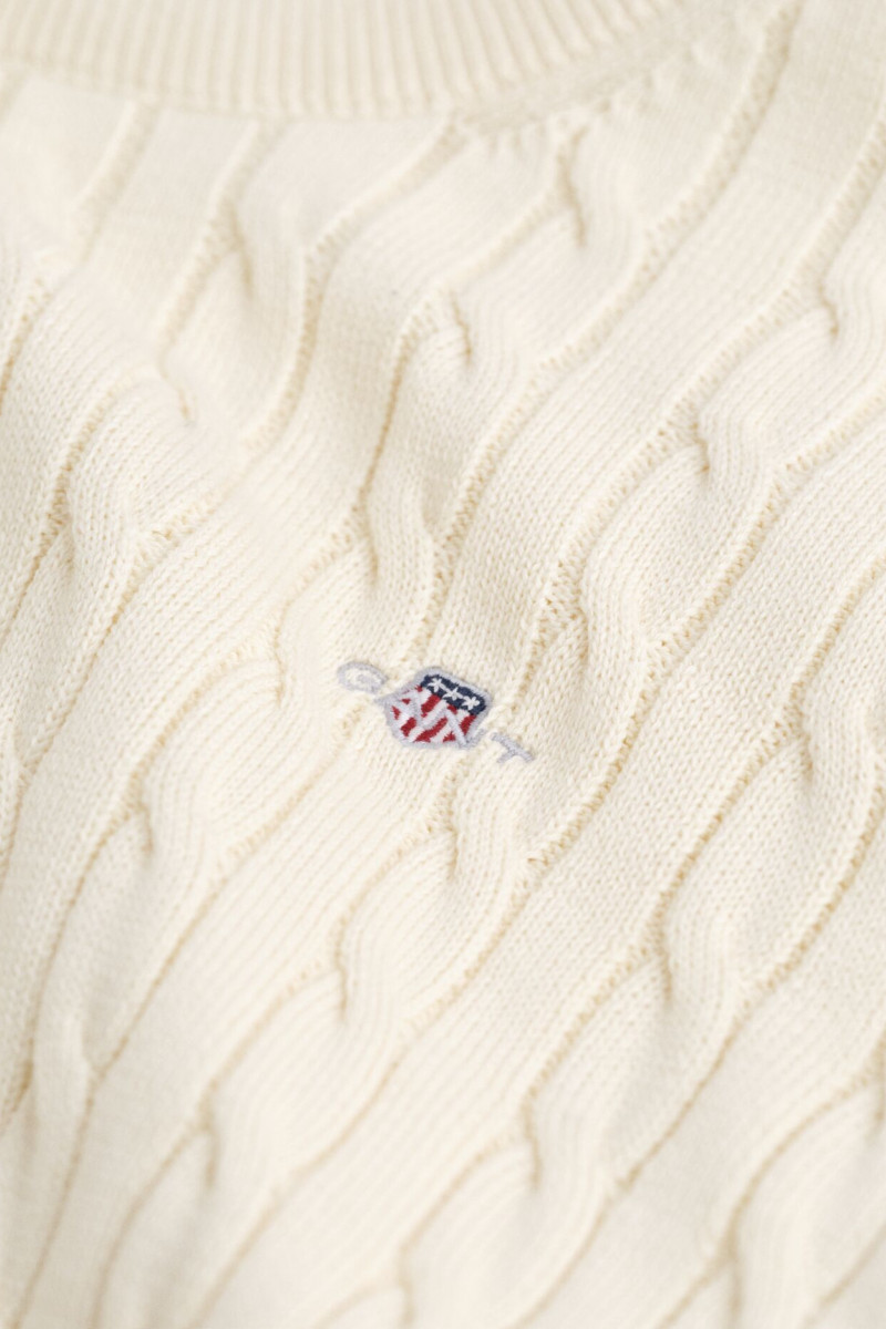 Fiú pulóver, amely elegánsan texturált, kötött anyagból készült és a mellkason ikonikus, hímzett Gant logóval van díszítve. A kerek nyakkivágással ellátott, egyenes szabású darabot praktikus szegélyek egészítik ki a derékon és az ujjakon - így a kényelmes pulóver tökéletesen alkalmazkodik viselője alakjához. A kiváló minőségű anyag prémium eredetű, tartós pamutszálból készült és rendkívüli puhaságot, valamint egyedülálló légáteresztő képességet biztosít. Kellemesen melegen tart. A márka időtálló örökzöldje, amely minden lezser, ugyanakkor elegáns ruhatár nélkülözhetetlen darabjává válik.