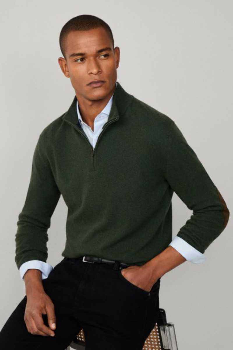 PULÓVER HACKETT LONDON MERINO CASH MIX HZIP DUCK GREEN