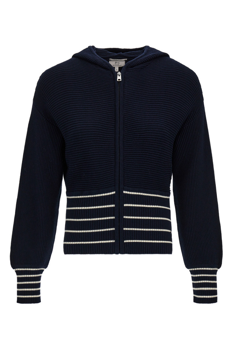 PULÓVER WOOLRICH PURE COTTON HOODIE MELTON BLUE CREAM STRIPE