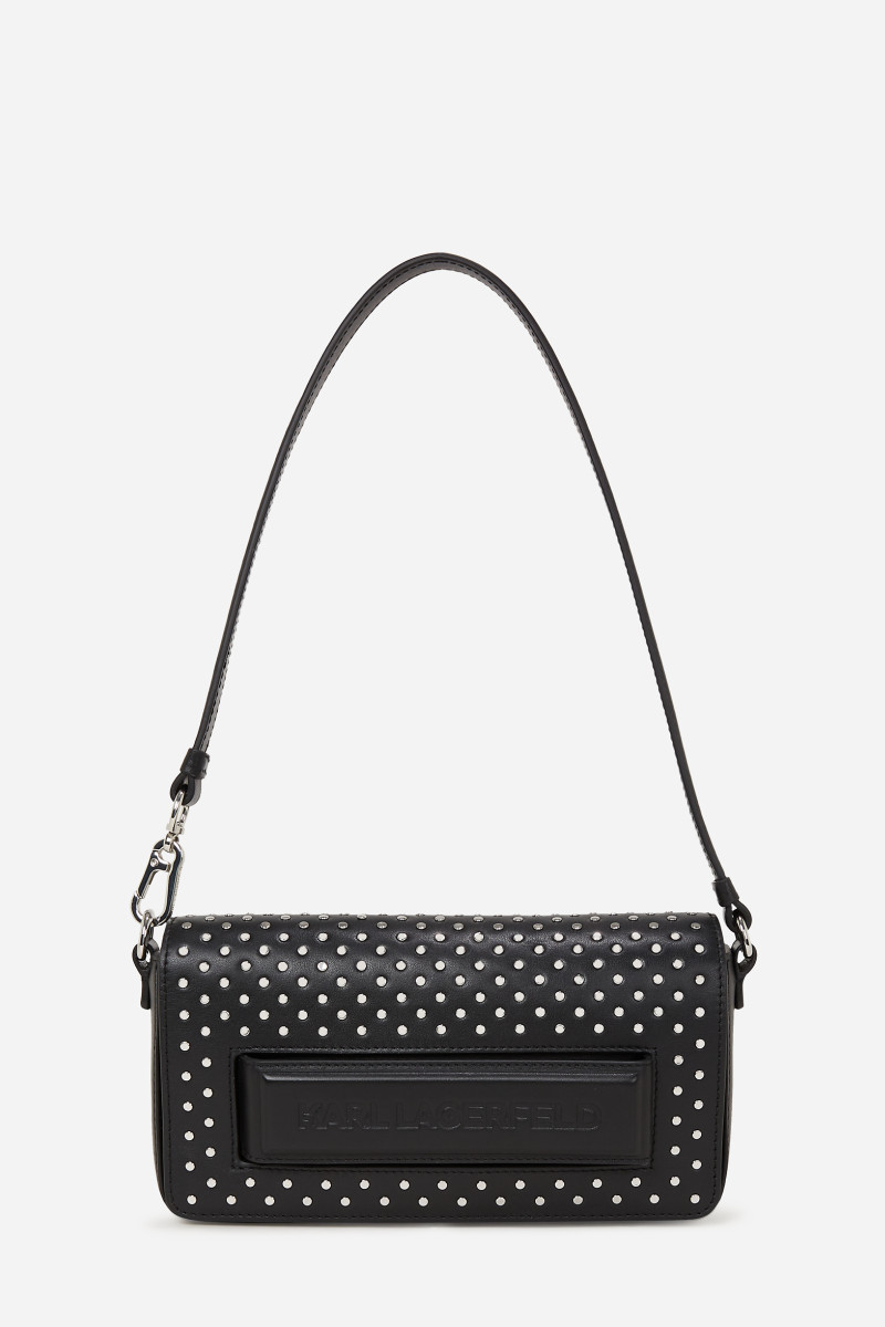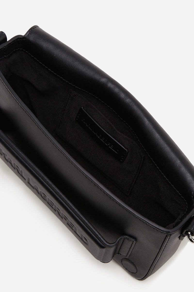 Női crossbody táska sima marhabőrből, amely exkluzív megjelenésével és eredeti részleteivel lenyűgözi Önt. A praktikus sziluettet Karl Lagerfeld logós panel egészíti ki, és a feltűnő díszítés szegecsekkel rockos hangulatot kölcsönöz a táskának. Tartozéka egy állítható és levehető vállpánt. A belseje lapos zsebbel van ellátva, amelyen szintén megtalálható a logo. A prémium minőségű marhabőr nagyon erős és tartós, miközben luxus megjelenését megőrzi. Egy figyelemfelkeltő és stílusos kiegészítő, amely tökéletessé teszi az Ön öltözékét.