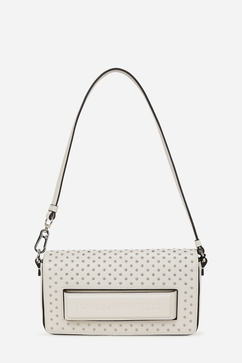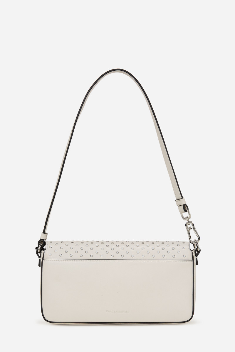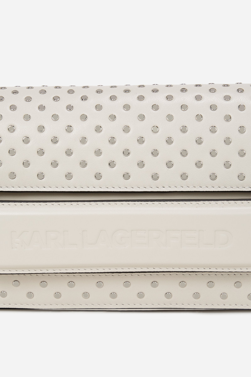 Női crossbody táska sima marhabőrből, amely exkluzív megjelenésével és eredeti részleteivel lenyűgözi Önt. A praktikus sziluettet Karl Lagerfeld logós panel egészíti ki, és a feltűnő díszítés szegecsekkel rockos hangulatot kölcsönöz a táskának. Tartozéka egy állítható és levehető vállpánt. A belseje lapos zsebbel van ellátva, amelyen szintén megtalálható a logo. A prémium minőségű marhabőr nagyon erős és tartós, miközben luxus megjelenését megőrzi. Egy figyelemfelkeltő és stílusos kiegészítő, amely tökéletessé teszi az Ön öltözékét.
