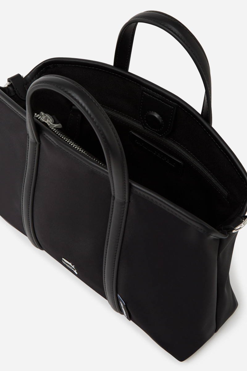 Női táska újrahasznosított szintetikus anyagból. Elegáns kialakítás kettős fogantyúval és állítható crossbody pánttal, mágneses fedéllel és minimalista Karl Ikon logóval az elején. A belső tér finom bélésével és külön zipzáras rekeszzel van felszerelve. Az anyagösszetétel kiváló tartósságot és könnyedséget biztosít. Tökéletesen stílusos és praktikus kiegészítő a mindennapi öltözékedhez.