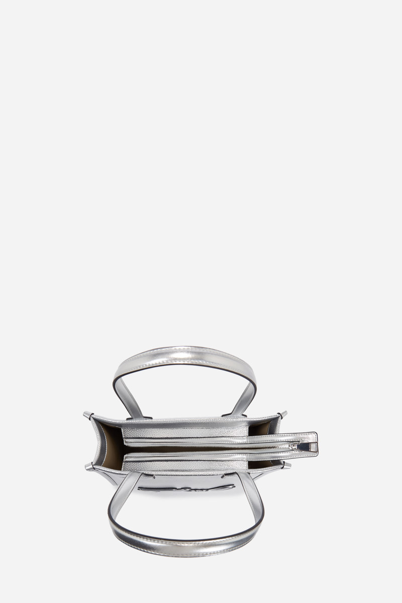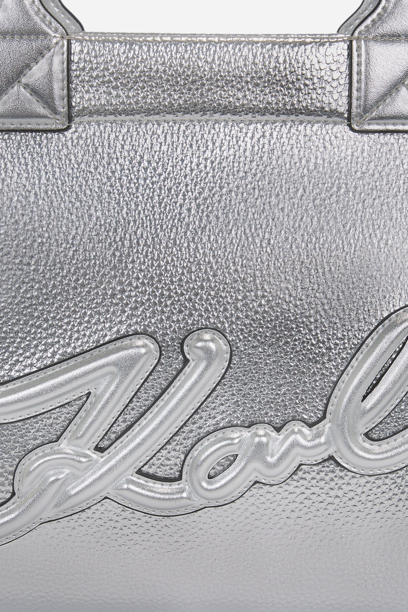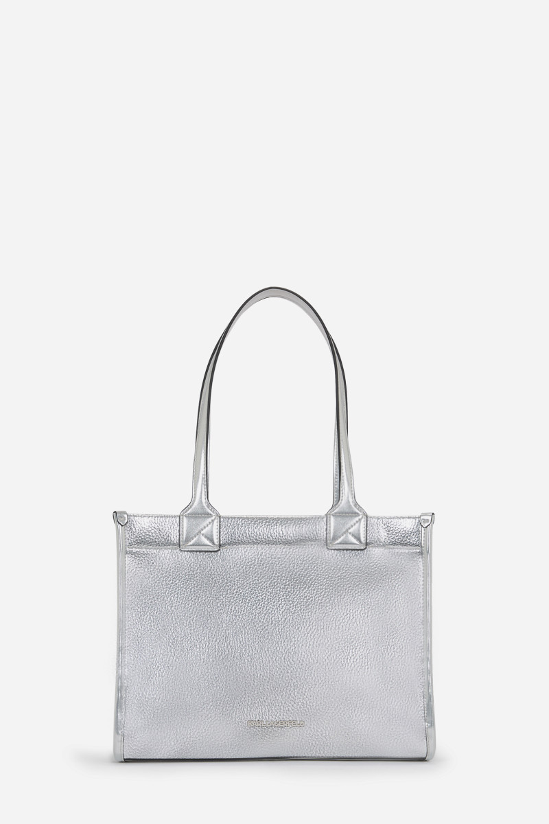 A K/SKUARE kollekcióból származó női kézitáska, amely a mindennapi eleganciát testesíti meg és a kifinomult esztétikát praktikussággal kombinálja. A négyzet alakú kézitáska közepes méretű és elülső oldalán dombornyomott Karl Signature logó egészíti ki. A cipzárral záródó táskát két meghosszabbított, technikai bőrből készült fül varázsolja praktikussá, amely lehetővé teszi a vállon való hordozást. Felületi anyaga tartós és könnyen karbantartható, strukturált technikai bőrből készült. Elengedhetetlen és stílusos kiegészítő.