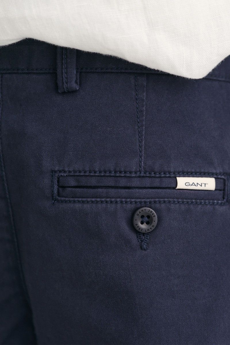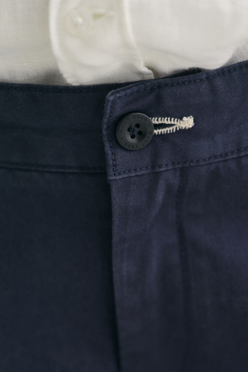 Gyermek vászonnadrág, egyenes szabással, térd feletti hosszal. Két ferde oldalsó és két hátsó zsebbel, szövetből készült márkajelzéssel. A derékrészen klasszikus gombos záródással és a belső oldalon elasztikus húzózsinórral. A kiváló minőségű anyag organikus pamutszálból készült, amely kellemes puhaságával és tökéletes légáteresztő képességével tűnik ki. A hozzáadott elasztánnak köszönhetően rugalmas, ami maximalizálja a kényelmes érzést viselés közben. Sokoldalúan kombinálható alapdarab, amely remekül mutat egy lezser, ugyanakkor elegáns öltözet részeként.