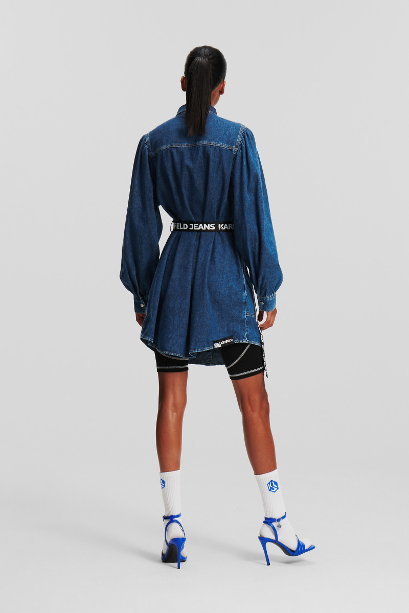 Hosszú ujjú, farmer anyagból készült női ingruha, amely Karl Lagerfeld Jeans logójelzéses övvel van ellátva. Kényelmes, könnyű farmer anyagból készült és nagyméretű ujjak, gombos rögzítés, valamint mandzsettás ujjak teszik különlegessé. Szövött Karl Lagerfeld Jeans címkével a hátsó szegélyen. Univerzális darab, amely minden alkalomra remek választás.