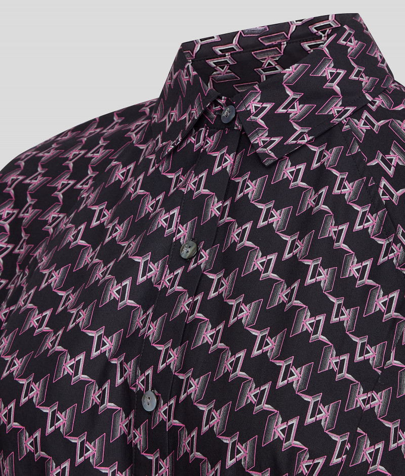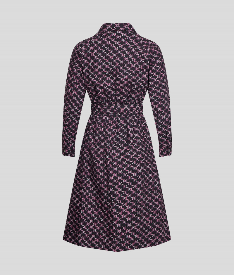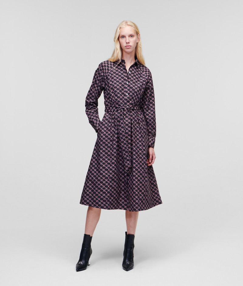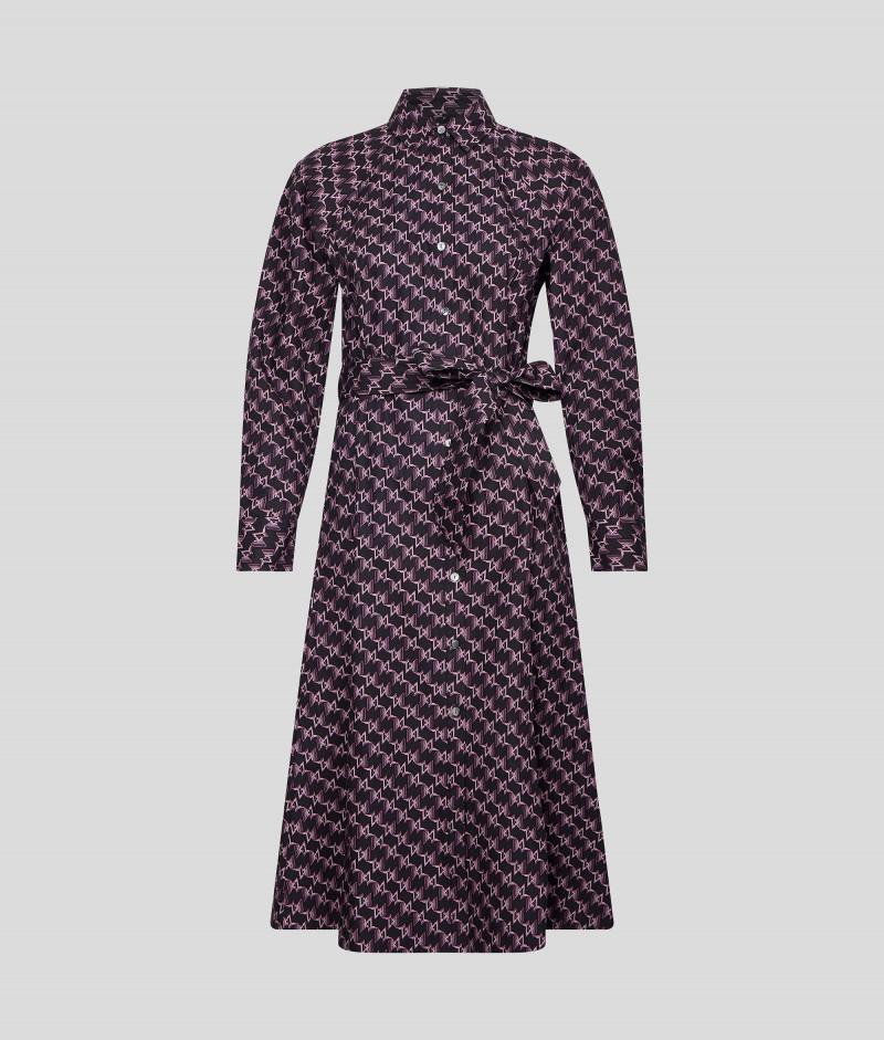A jellegzetes, mindenhol KARL Monogram feliratú nyomtatás megkülönböztető érzést kölcsönöz ennek a klasszikus ingruhának. Ez a kifinomult darab tökéletes a két évszak közötti stílushoz, légáteresztő organikus pamutból készült, és övvel rendelkezik a további alakformálás érdekében. KARL márkajelzésű gyöngyházgombok az elülső rögzítésen. Gombos mandzsetta az ujjakon.