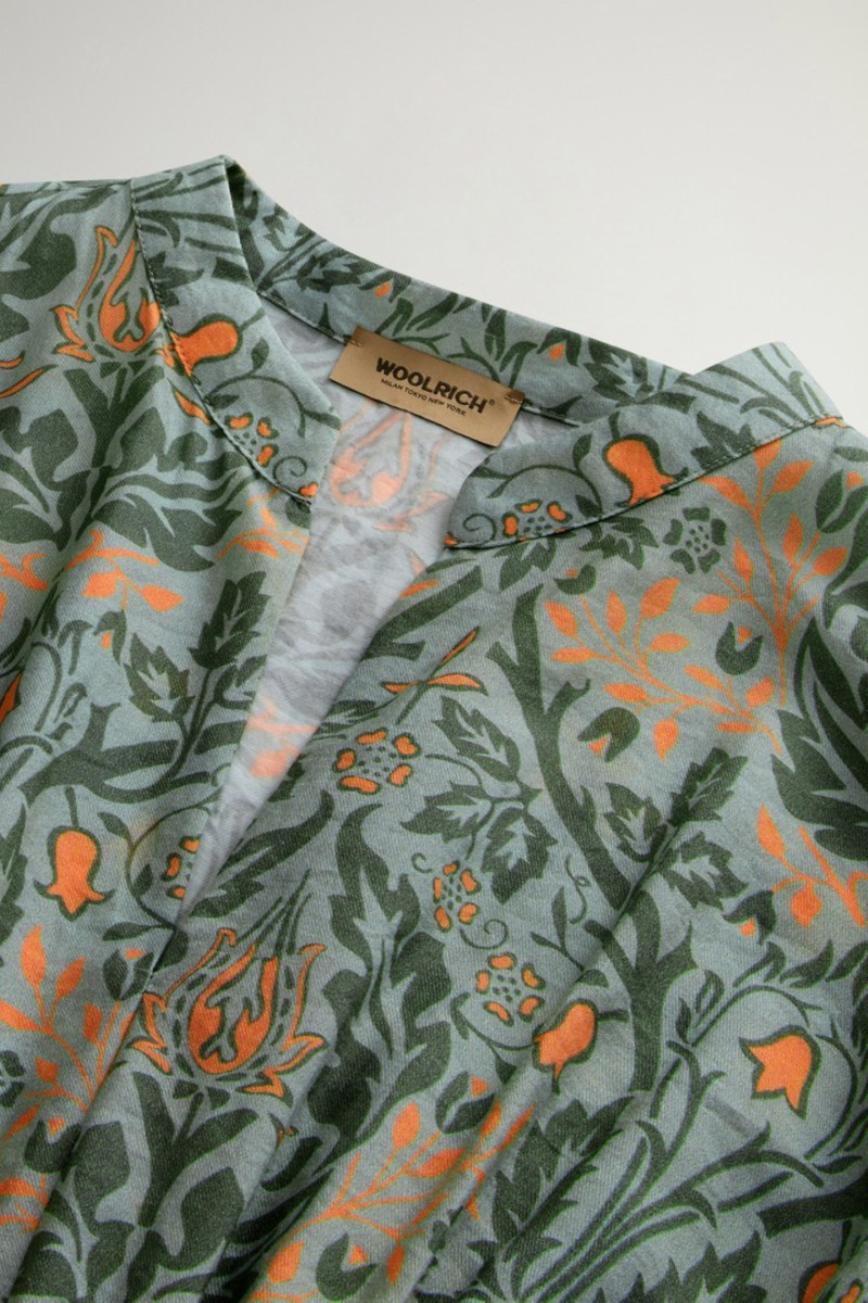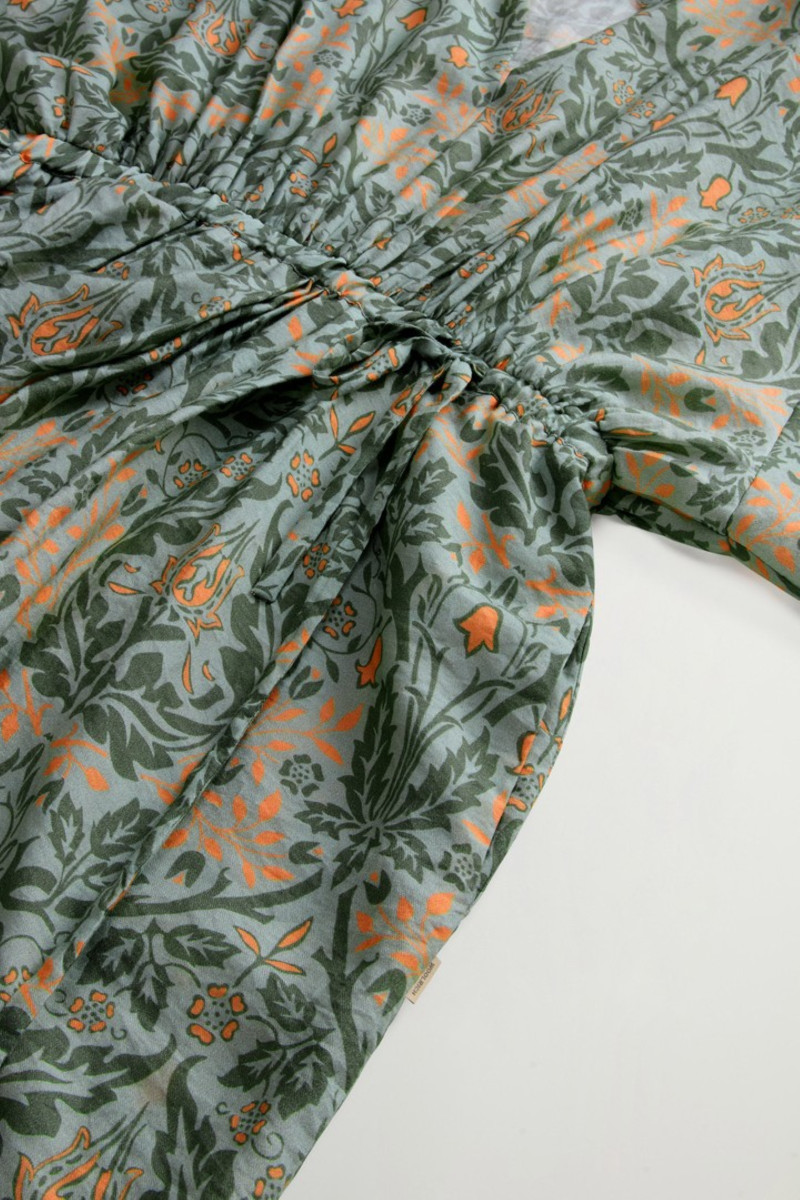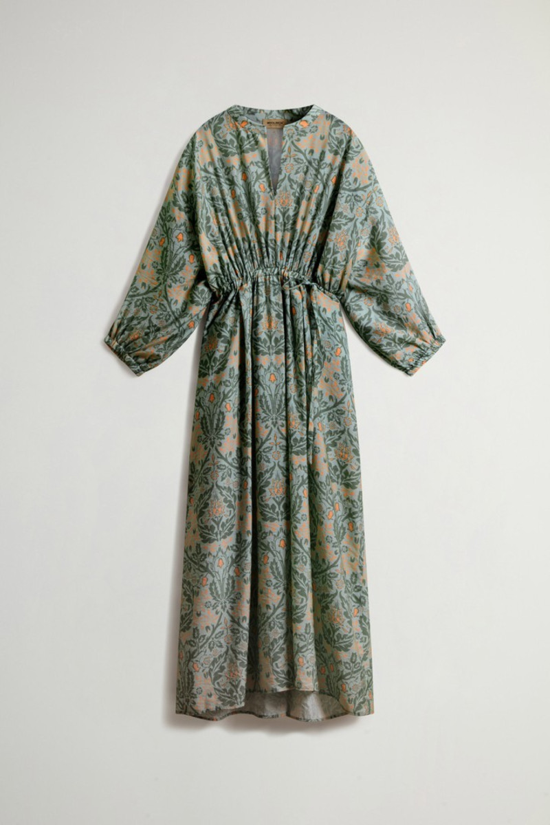 Női ingruhás midi ruha térd alá érő hosszal, amit az egész felületén elhelyezkedő originálisan virágmintás nyomat díszít. Az elegáns design háromnegyedes hosszúságú balon ujjakkal, V-kivágással és rejtett gombos megkötővel egészül ki, valamint tonális övvel a derékon és diszkrét zsebekkel az oldalvarrásokban. A gyönyörűen illeszkedik anyagösszetétel tökéletes könnyedséget, légáteresztő képességet és kényelmes viseletet garantál viselése során. Nőies és nagyon rafinált darab, amely feldobja a megjelenésedet.
