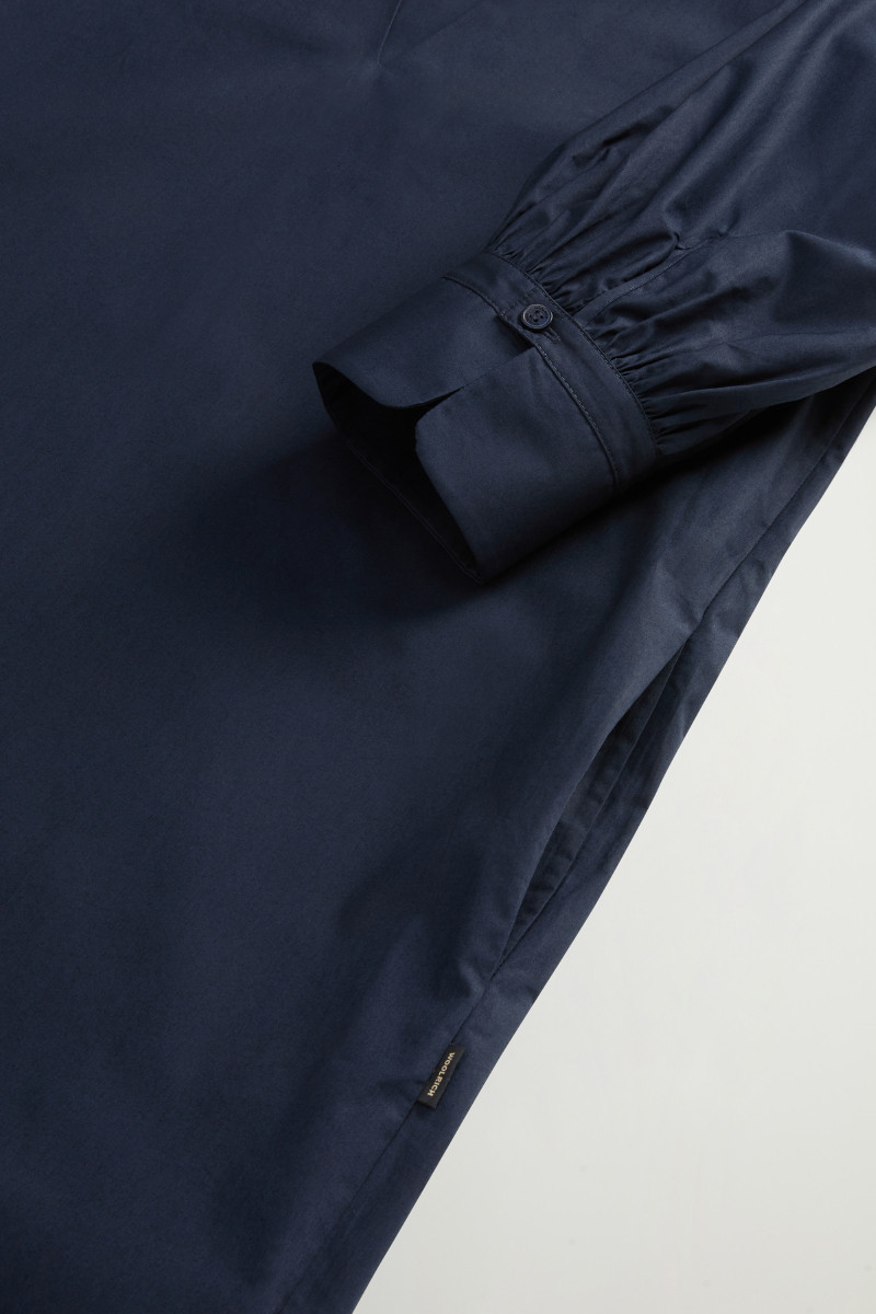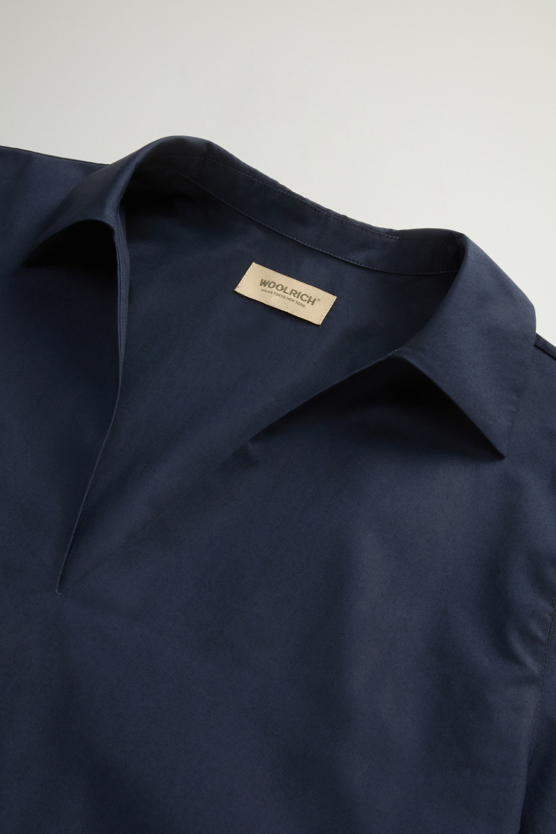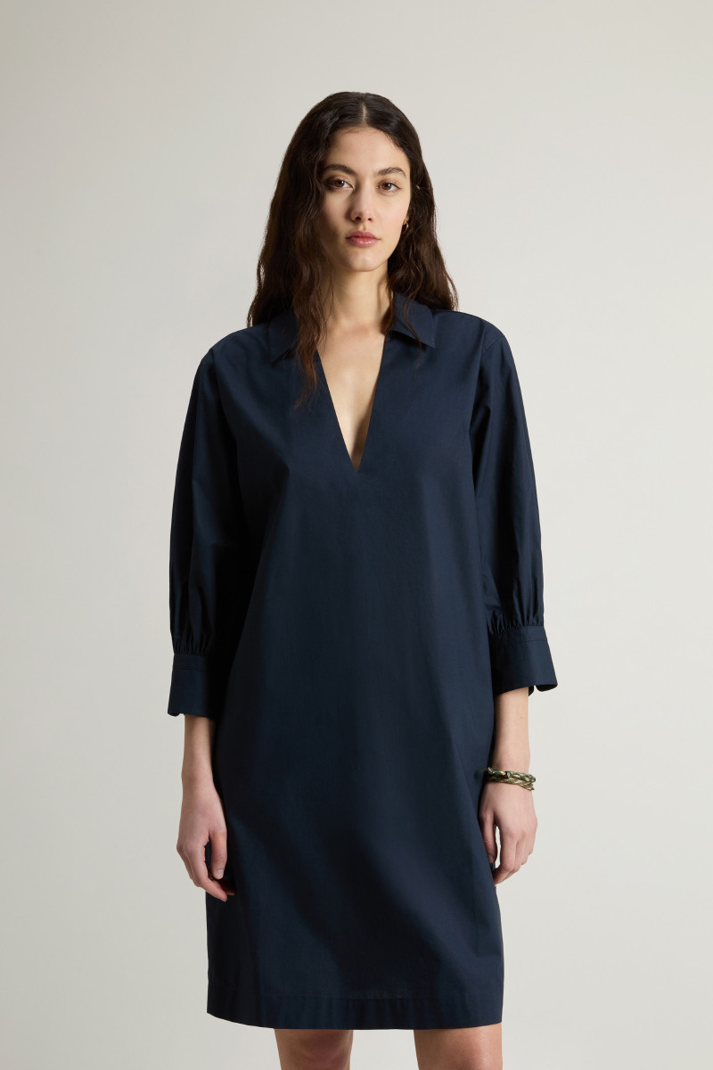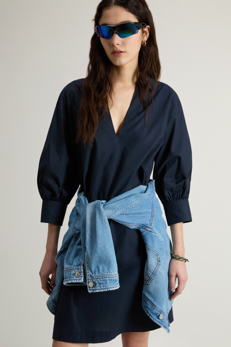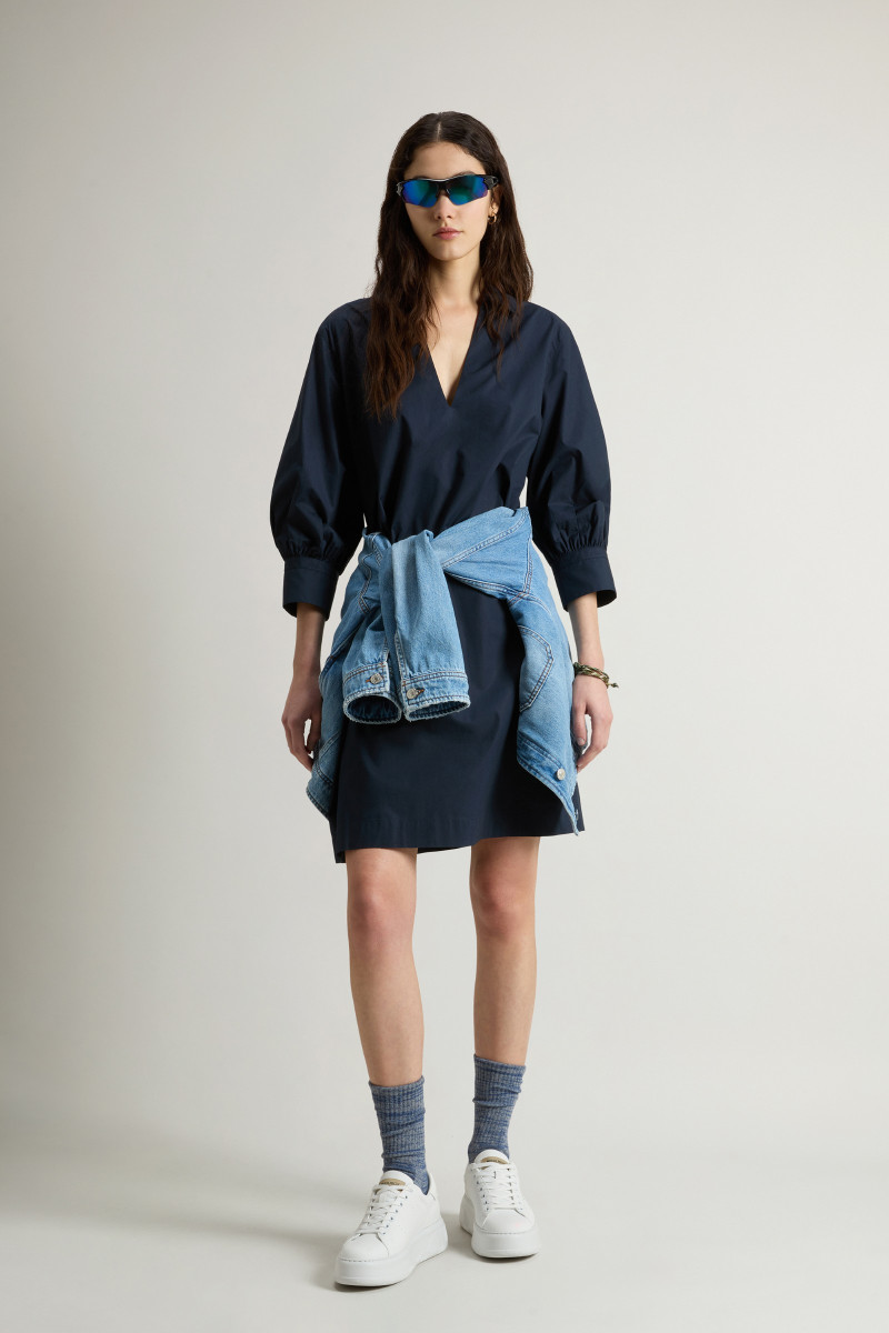 Női laza szabású, térdig érő ruha. Az egyszínű, gallérral és mély V-nyakkivágással ellátott dizájnt háromnegyedes ujjak egészítik ki, amelyeket gombos mandzsetta és diszkrét zsebek egészítenek ki az oldalsó varrásnál. A bal oldalon egy finom Woolrich logós címke található. A prémium pamutból készült finom poplin anyag tökéletes légáteresztést, könnyűséget és kellemes viseletet biztosít. Nagyon praktikus és kényelmes darab, amely a sportos-elegáns öltözéked csúcspontja lesz.
