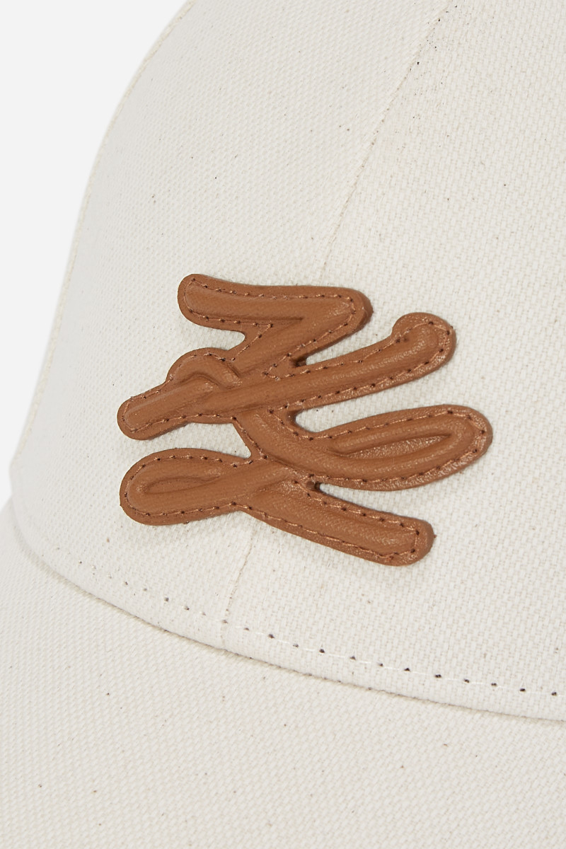 Női sültös sapka, amelyet elegáns, bőrből készült Karl Autograph logó díszít az elülső oldalán. A klasszikus, hatrészes kialakítású darabot ívelt napellenző és hátoldalán hímzett Karl felirat egészíti ki. Hátoldalán csattal, amely lehetővé teszi a méret könnyű beállítását. A tartós, 100%-ban pamutból készült szövet nagyszerű légáteresztő képességet biztosít és sokáig megőrzi eredeti alakját. Tökéletesen kombinálható kiegészítő, amely stílusossá varázsolja majd lezser öltözékét.