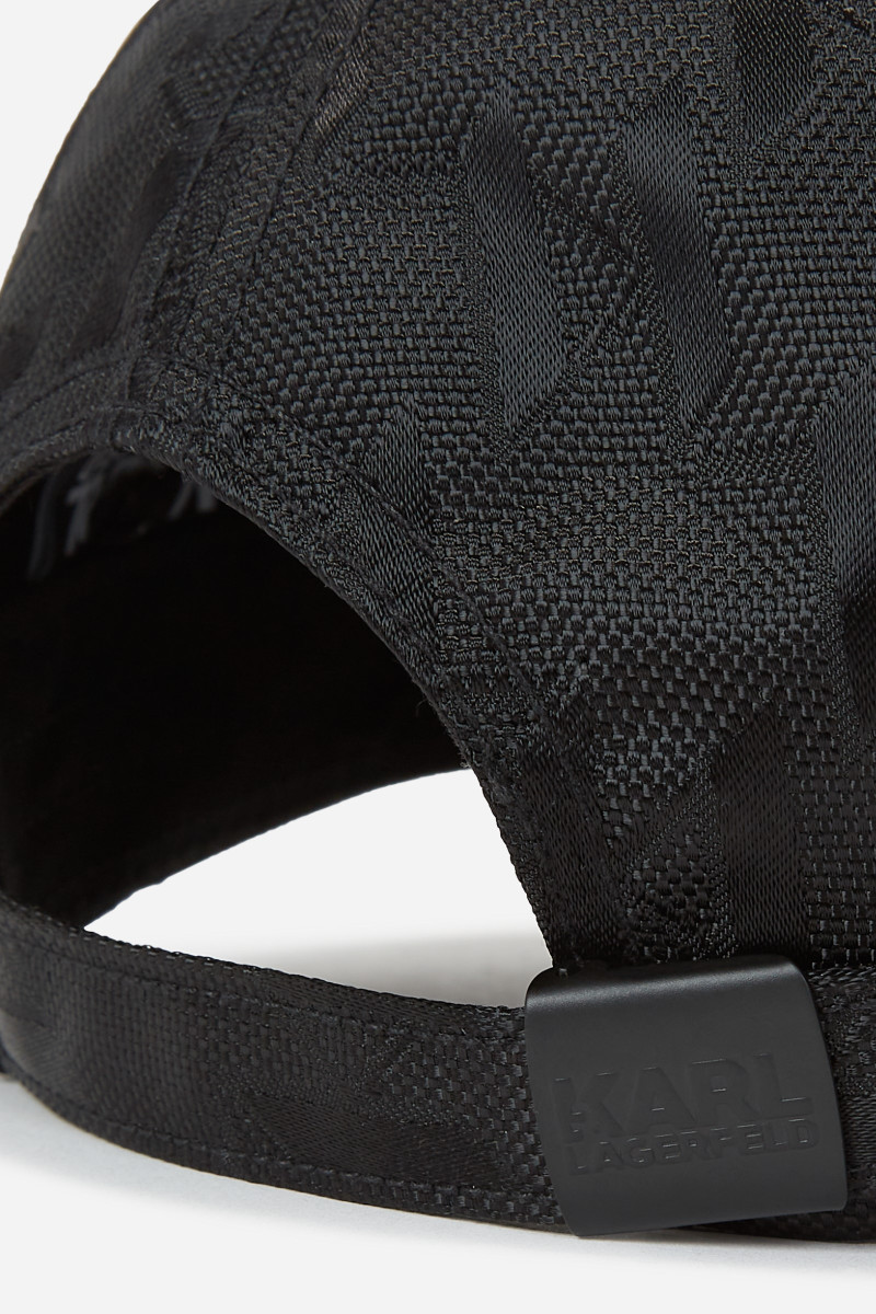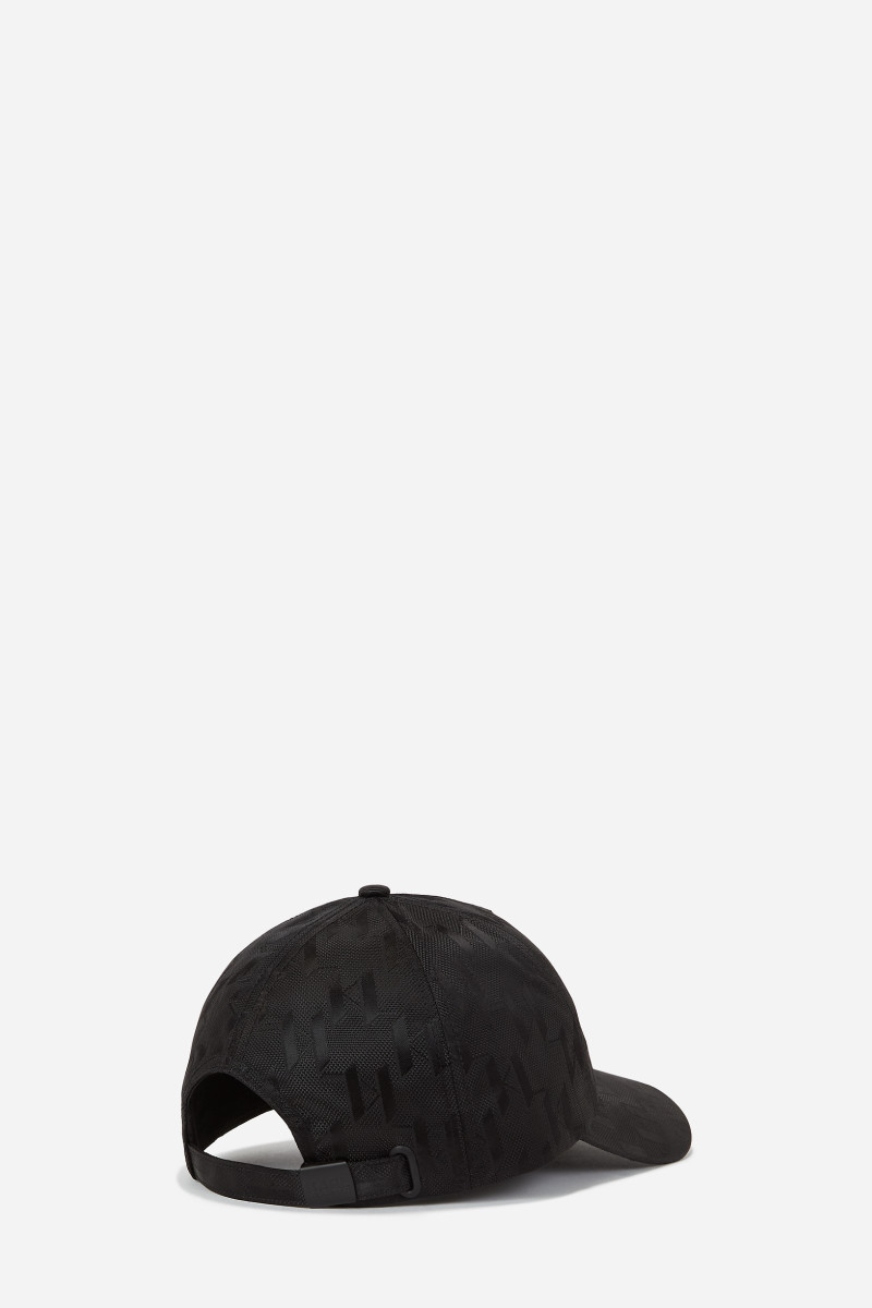 Férfi baseball sapka, amely teljes egészében Karl monogrammal van ellátva. Elülső oldalán hímzett, tonális Karl Lagerfeld logóval. A klasszikus hatrészes kialakítású darabot ívelt napellenző és egy fémből készült csat egészíti ki, amely lehetővé teszi a méret könnyű beállítását. Az újrahasznosított, szintetikus anyagból készült darab maximális viselési kényelmet biztosít. Rendkívül stílusos kiegészítő, amely tökéletessé varázsolja majd bármely lezser öltözékét.