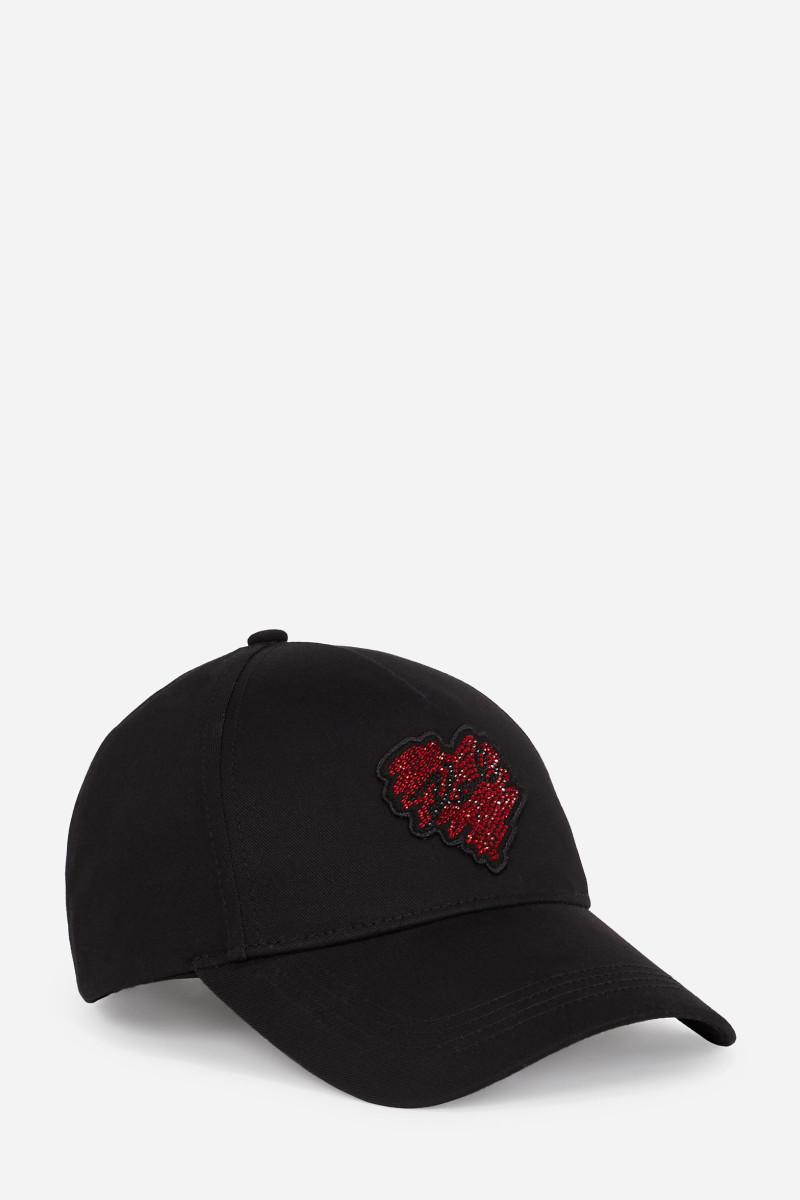 Női sapka, amelyet strasszkövekkel kirakott csillogó szív és K/Signature logó egészíti ki a az elülső oldalon. A klasszikus, hatrészes kialakítású darabot ívelt napellenző és a hátoldalon hímzett Karl hímzés egészíti ki. Egy ezüstszínű csattal és övvel a hátoldalon, amely a méret könnyű beállítását teszi lehetővé. A részben újrahasznosított pamutból készült tartós anyag kiváló légáteresztő képességet biztosít és sokáig megőrzi majd eredeti alakját. Tökéletes ajándék ötlet és rendkívül stílusos kiegészítő, amelybe a KARL LAGERFELD márka minden kedvelője beleszeret majd.