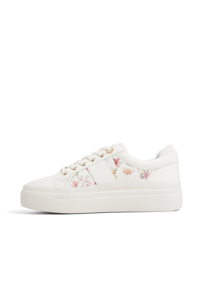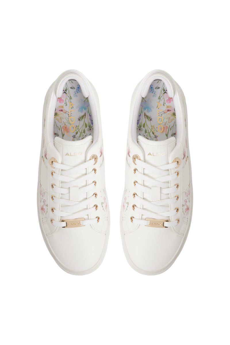 Női tornacipő, amely sokoldalú felhasználásával és maximális kényelmével lenyűgözi Önt viselés közben. Sportos dizájn kerek orrral és fűzős megkötéssel, amelyet steppelt dizájn, arany kiegészítők és virágos részletek egészítenek ki, finom benyomást keltenek. Egy összetéveszthetetlenül stílusos cipő, amely ékességévé válik az Ön öltözetének.