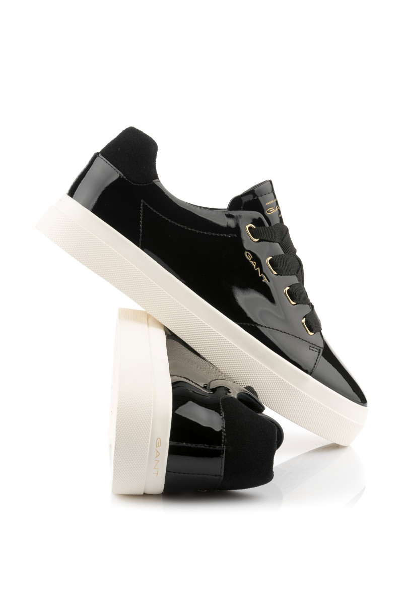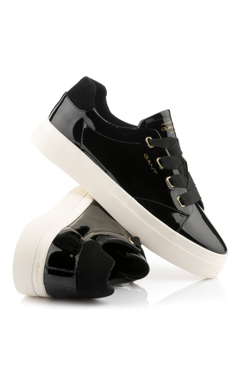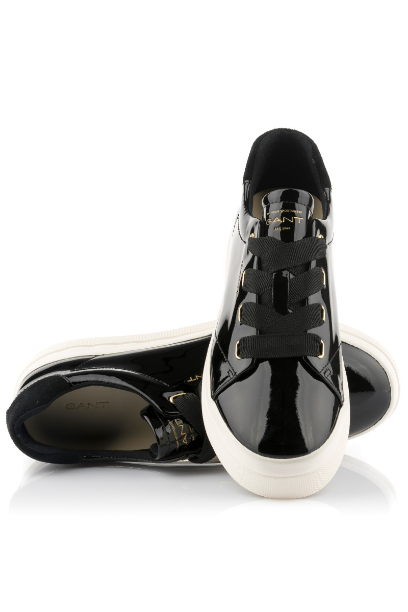 Női tornacipő, amely prémium minőségű, lakkozott bőrből készült. Sokoldalú felhasználhatóságával és eredeti részleteivel lenyűgözi majd Önt. A széles cipőfűzővel és magasabb gumitalppal ellátott sportos, ugyanakkor elegáns darab a sarokrészen szemis részlettel van kiegészítve. A külső oldalon és a nyelven decens Gant logóval. A kényelmes belső térben bőrből készült talpbetét található. Rendkívül stílusos lábbeli, amely garantáltan feldobja majd öltözékét.