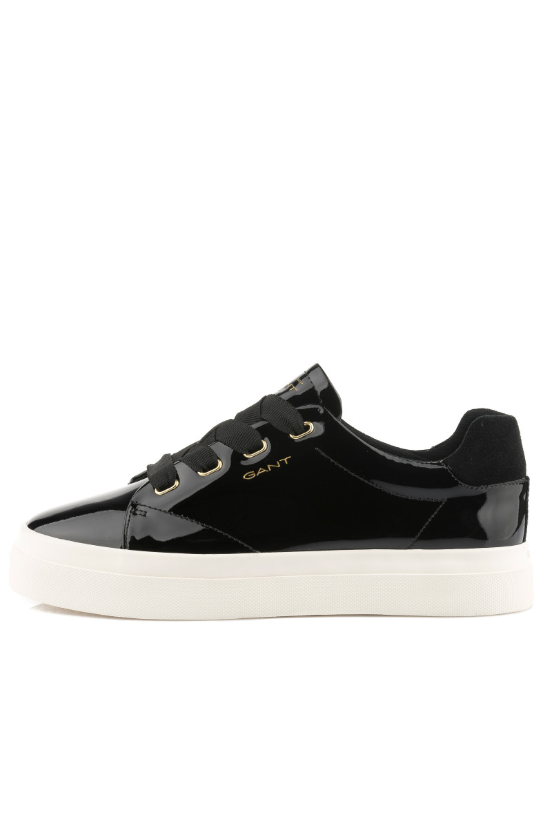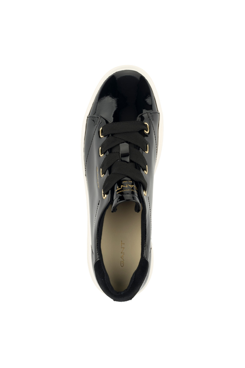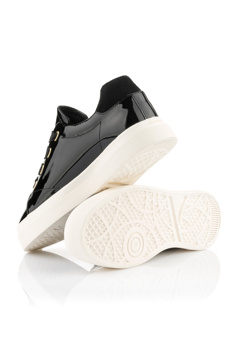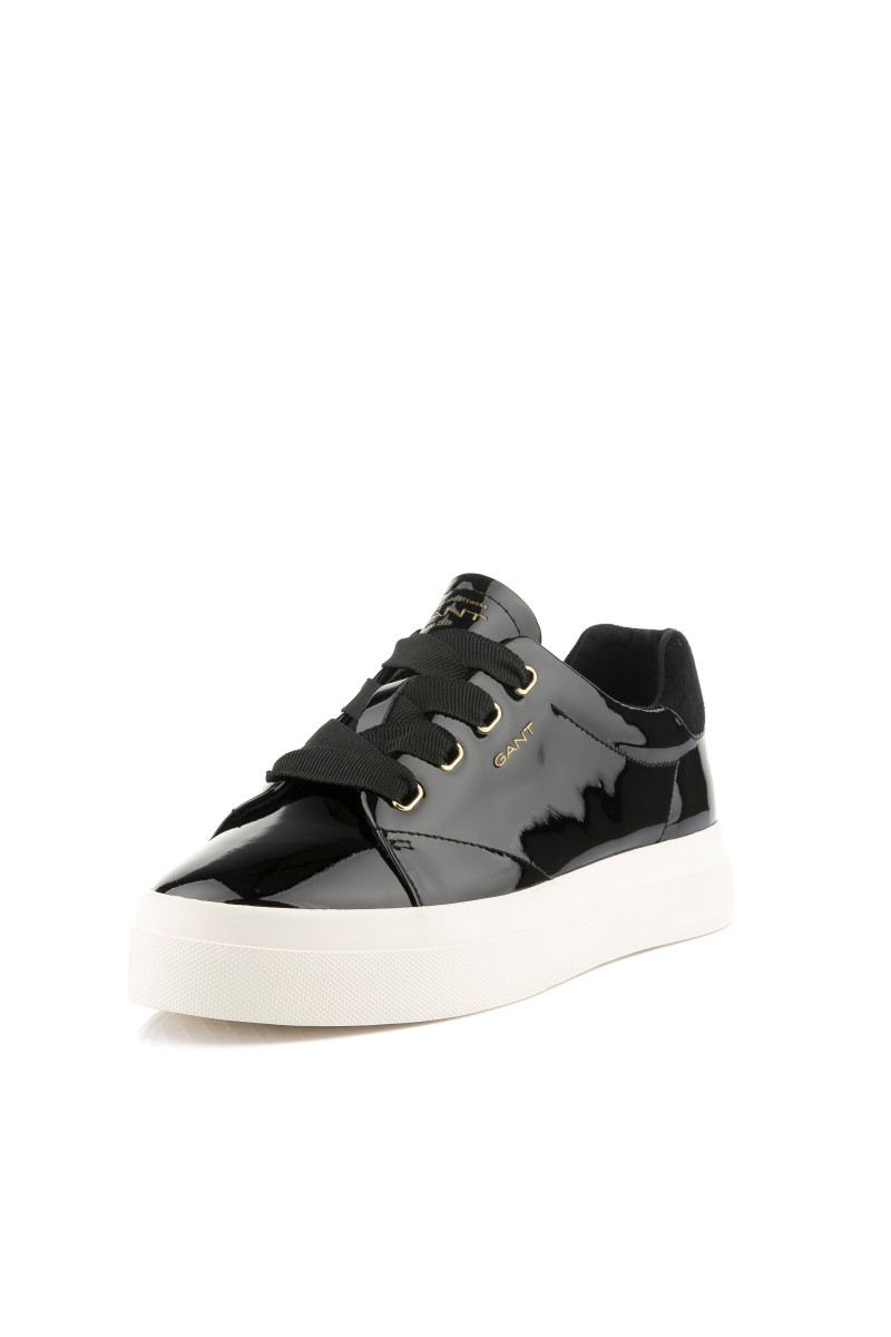 Női tornacipő, amely prémium minőségű, lakkozott bőrből készült. Sokoldalú felhasználhatóságával és eredeti részleteivel lenyűgözi majd Önt. A széles cipőfűzővel és magasabb gumitalppal ellátott sportos, ugyanakkor elegáns darab a sarokrészen szemis részlettel van kiegészítve. A külső oldalon és a nyelven decens Gant logóval. A kényelmes belső térben bőrből készült talpbetét található. Rendkívül stílusos lábbeli, amely garantáltan feldobja majd öltözékét.