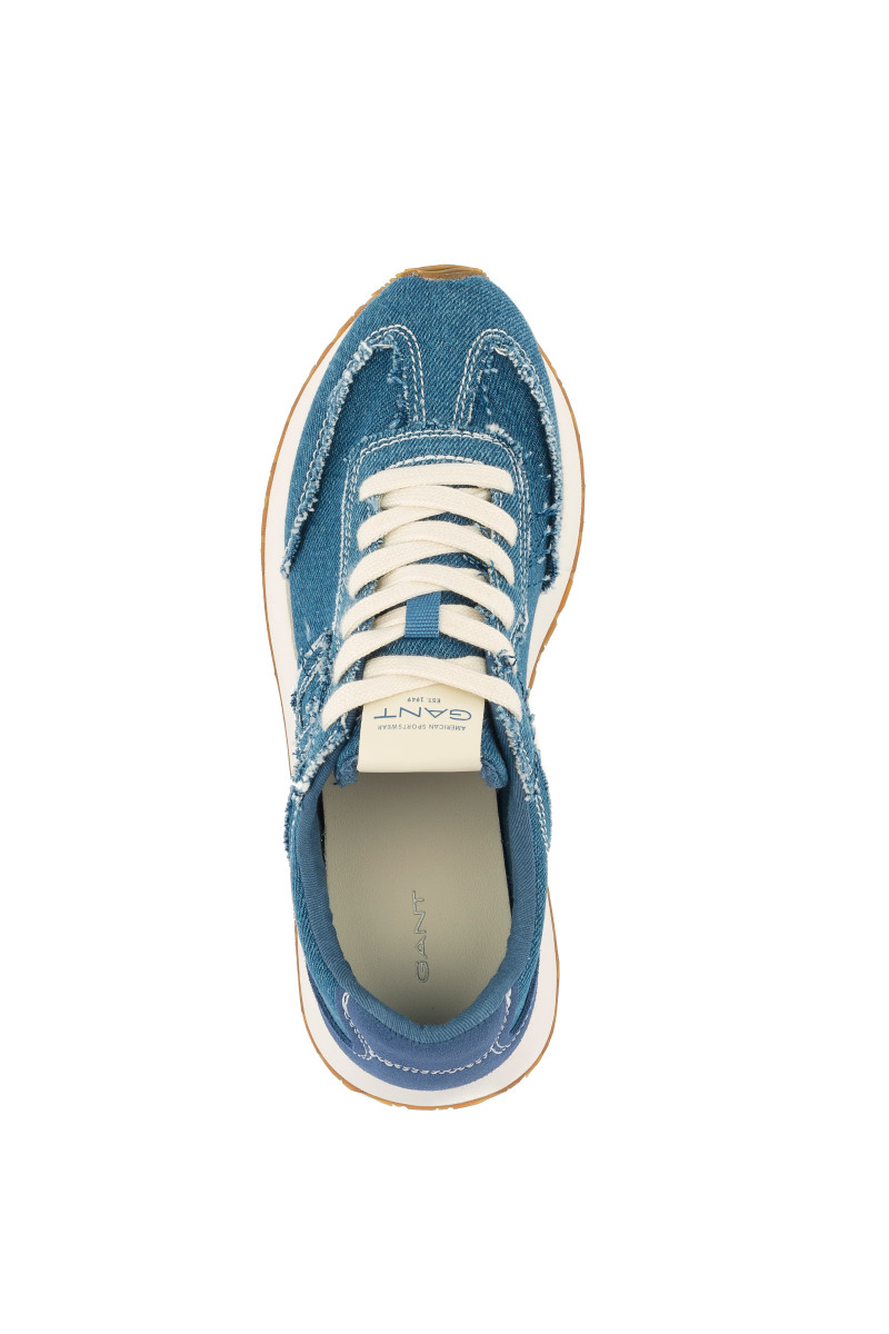 Farmer felületű női tornacipő, amelyet külső oldalán G logó applikáció díszít. A sportos, mosott hatású és enyhén kopottas szegélyű kialakítást a sarokrészen velúr részletek és a nyelven GANT logó applikáció egészíti ki. A kényelmes pamutból készült belső tér bőr talprésszel van ellátva. Rendkívül stílusos és eredeti cipő, amely lezser öltözékének központi elemévé válik.