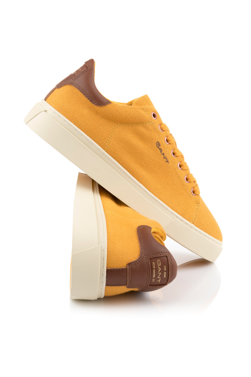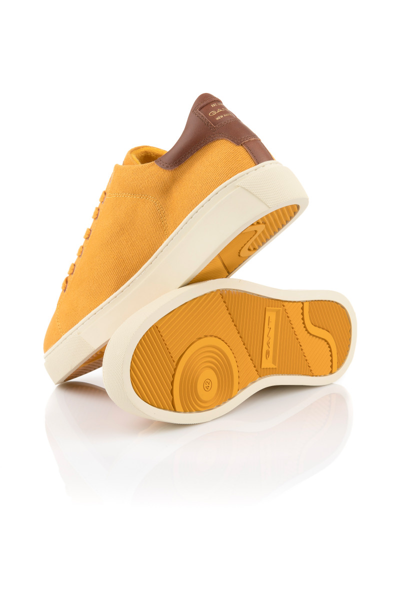 Férfi vászon tornacipő, amely tökéletesen légáteresztő anyagból készült és egyszínű twill szövésű. Hímzett márkafelirattal a cipő nyelvén és külső oldalán a fűző alatt. Díszes, sima bőrből készült részlettel a praktikusan megerősített sarokrészen. Textilbéléssel, amely kellemesen puha tapintású, kiválóan alkalmazkodó talpbetéttel és könnyű talprésszel van ellátva, amely tartós gumiból készült. Egy rendkívül kényelmes szabadidős lábbeli típus, amely ízléses kiegészítőjévé válik nyári öltözékének.