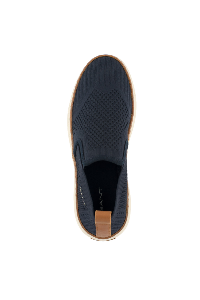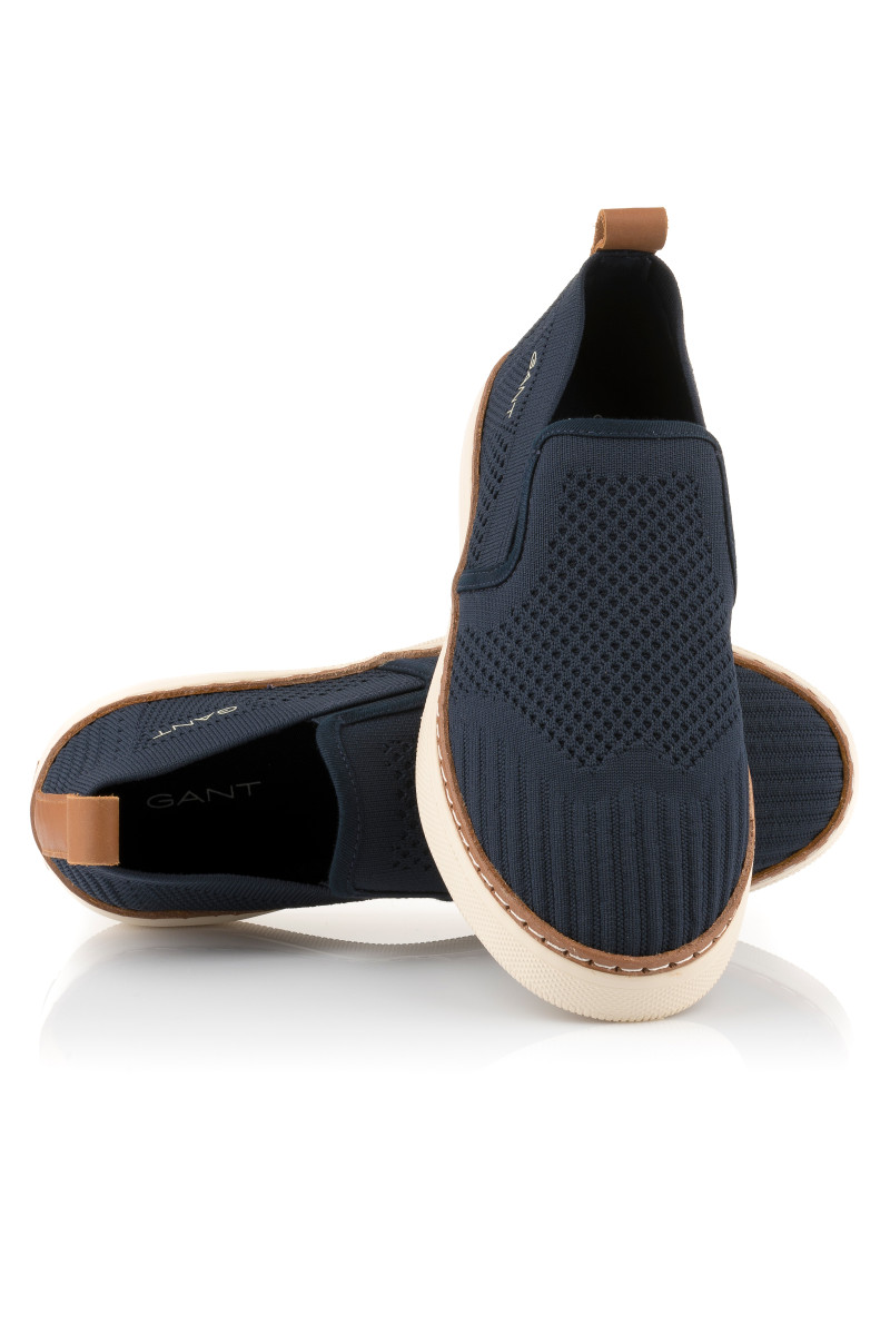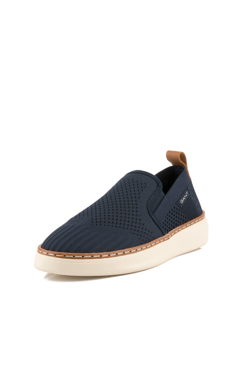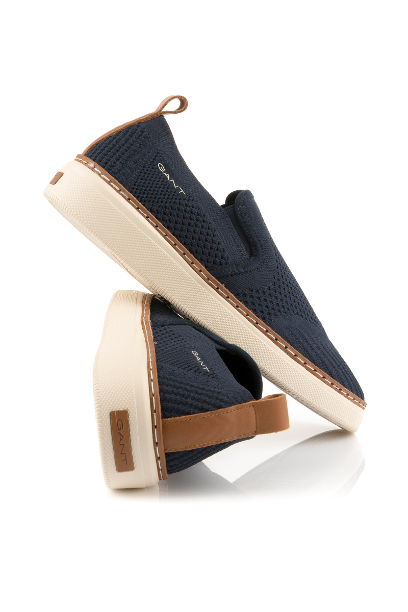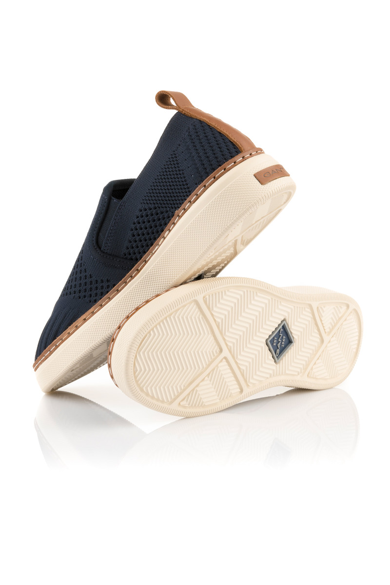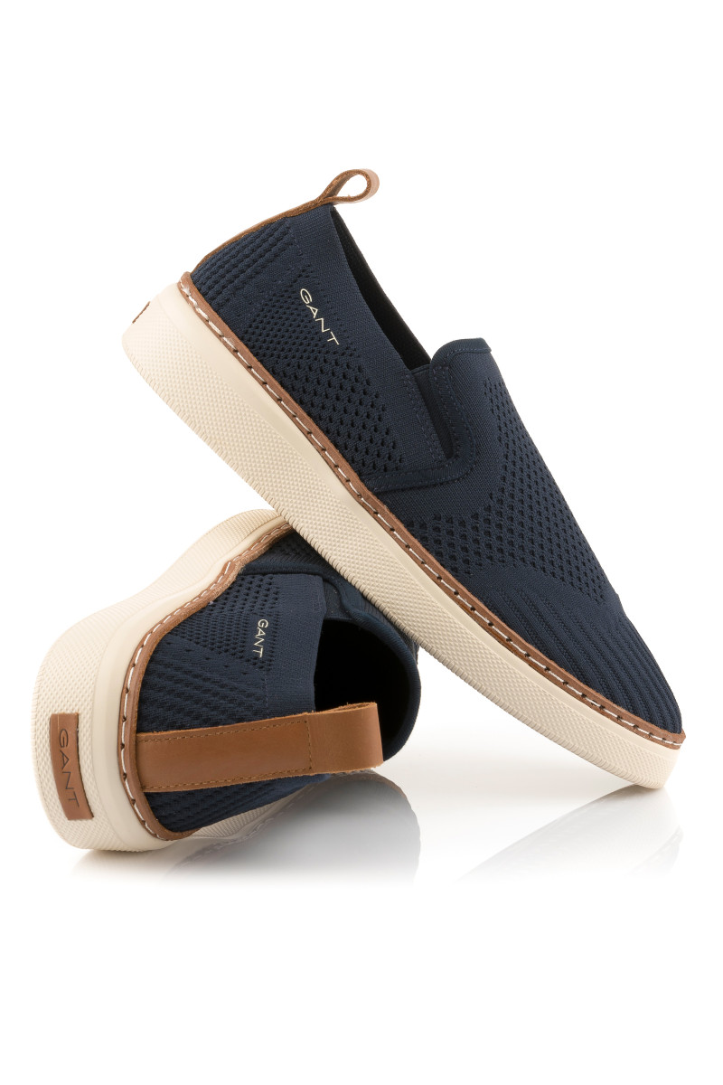 Férfi slip-on, amely texturált, kötött anyagból készült. A tökéletesen légáteresztő felületi anyagot két elasztikus részlet egészíti ki a lábfejnél, amely lehetővé teszi a könnyű fel- és levételt. A külső oldalon minimalista márkafelirattal, valamint a talprészen rafináltan elhelyezett bőr márkajelzéssel, amelynek színe összhangban van a sarokhurokkal és a talp szegélyével. A textilbéléssel ellátott darabot rugalmas és jól alkalmazkodó talpbetét egészíti ki, amely kiváló minőségű szintetikus anyagból készült, így a könnyű talprésszel kombinálva kényelmes érzést garantál viselés során. Sokoldalúan felhasználható szabadidős lábbeli, amely ízléses kiegészítőjévé válik nyári stílusának.
