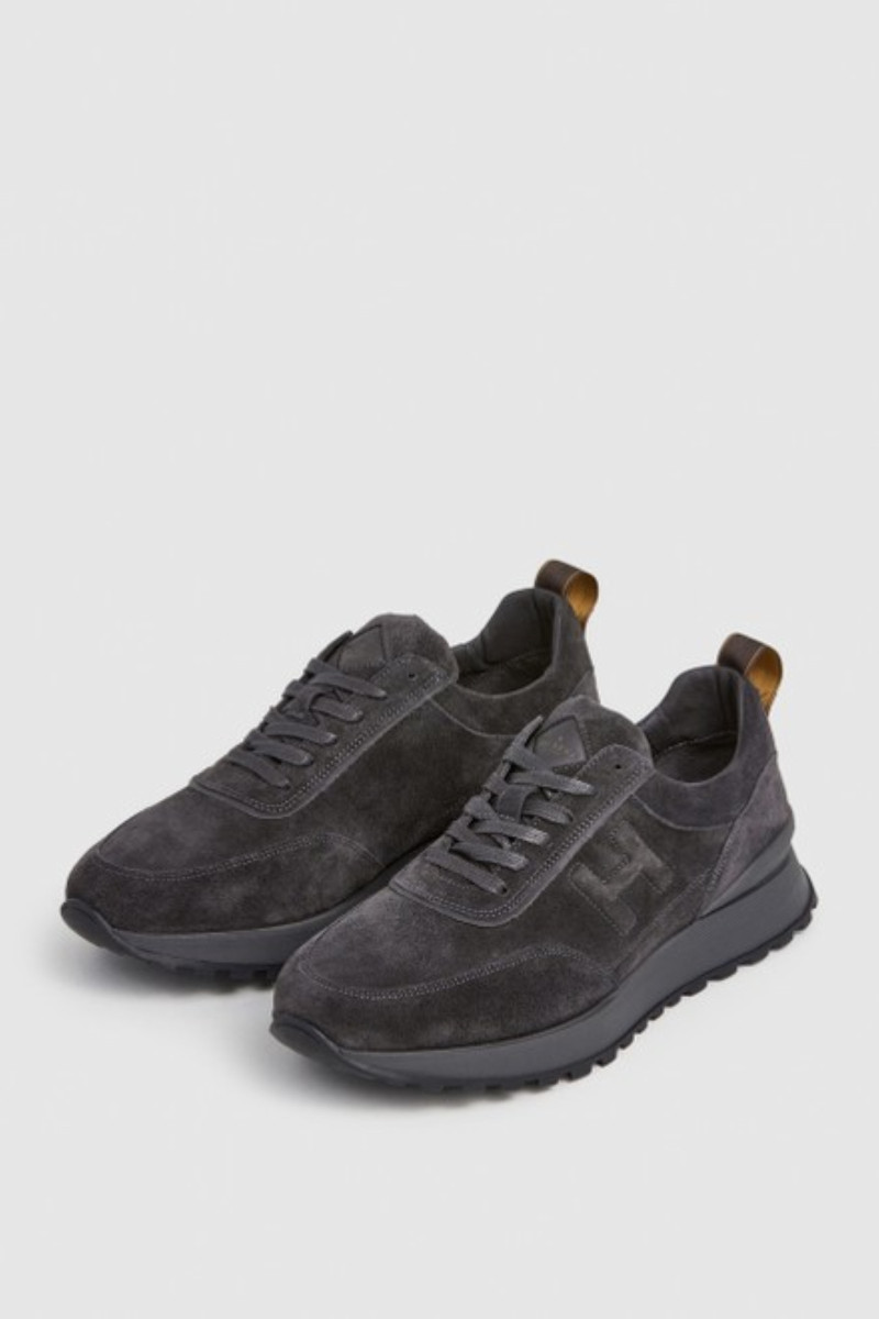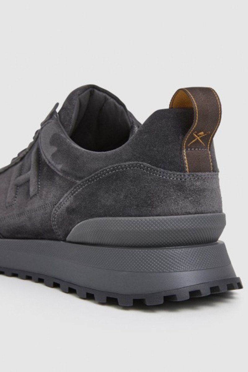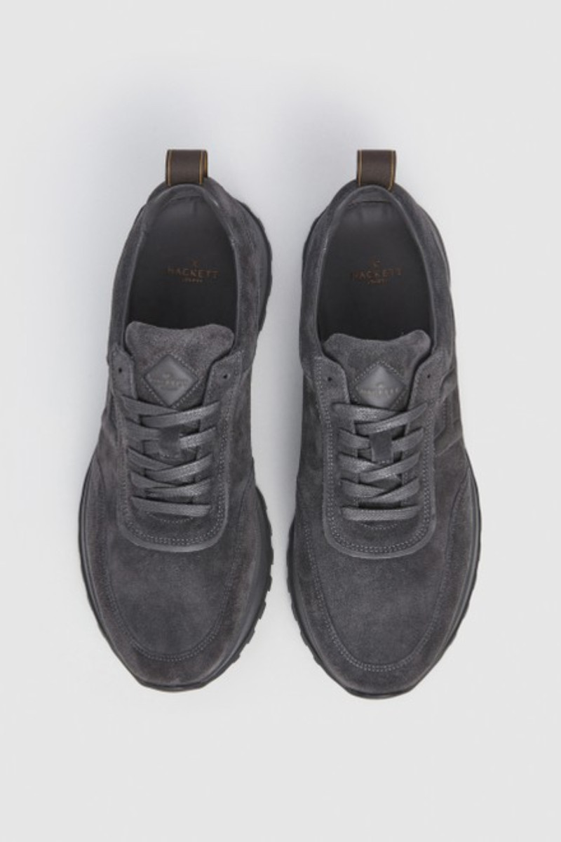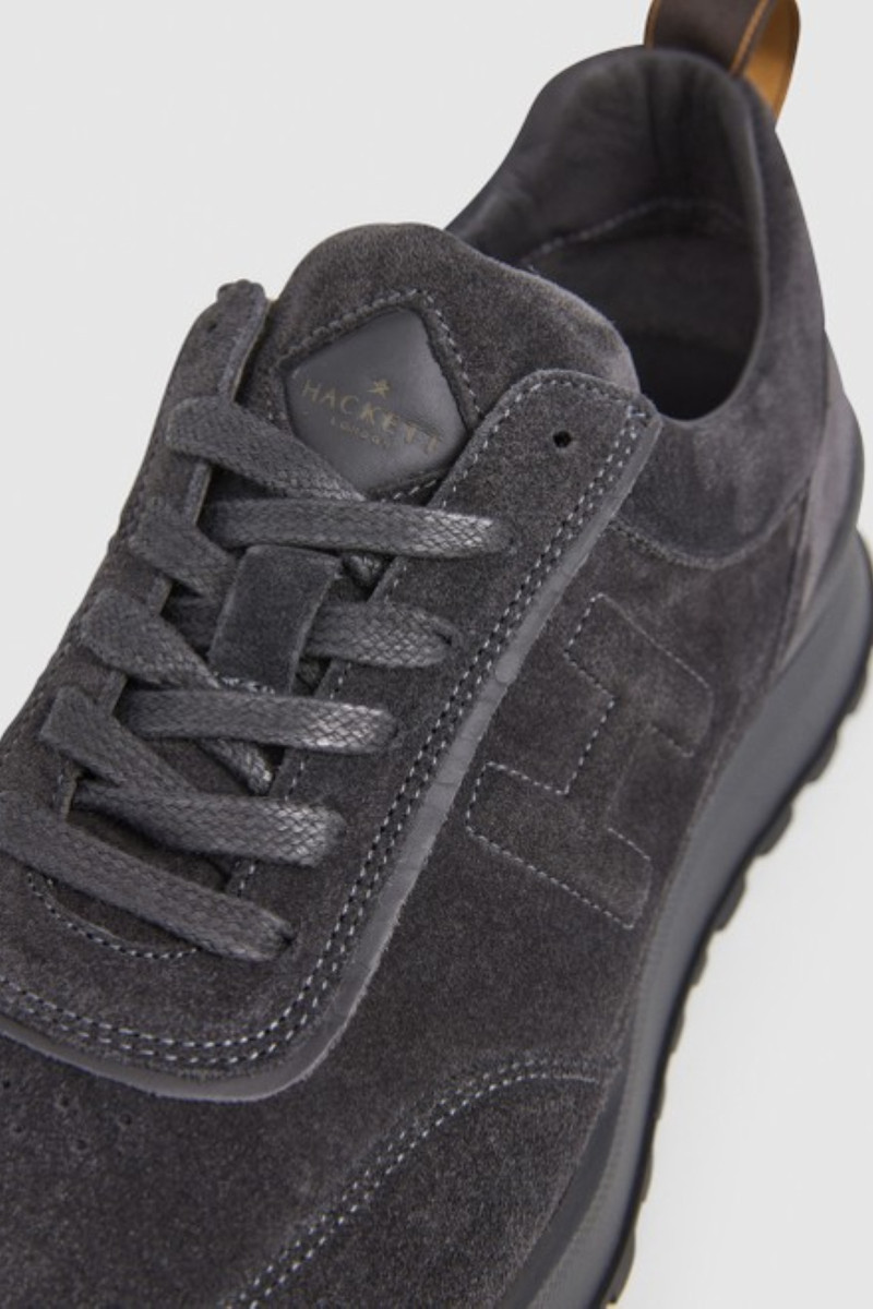 Férfi tornacipő, amely prémium minőségű, csiszolt marhabőrből készült és sokoldalú felhasználhatóságot, valamint maximális kényelmet garantál viselés során. Lezser kialakítású, fűzővel és magasabb, kontrasztos színű talprésszel ellátott. Könnyű és rugalmas anyagból készült sarokstabilizátorral, valamint a Hackett márka monogramjának dombornyomott logójával a külső oldalon. A textilből készült belső tér kivehető és bőrből készült talpbetéttel van kiegészítve. Tökéletesen kényelmes lábbeli, amely stílusossá varázsolja a hétköznapok öltözékét.