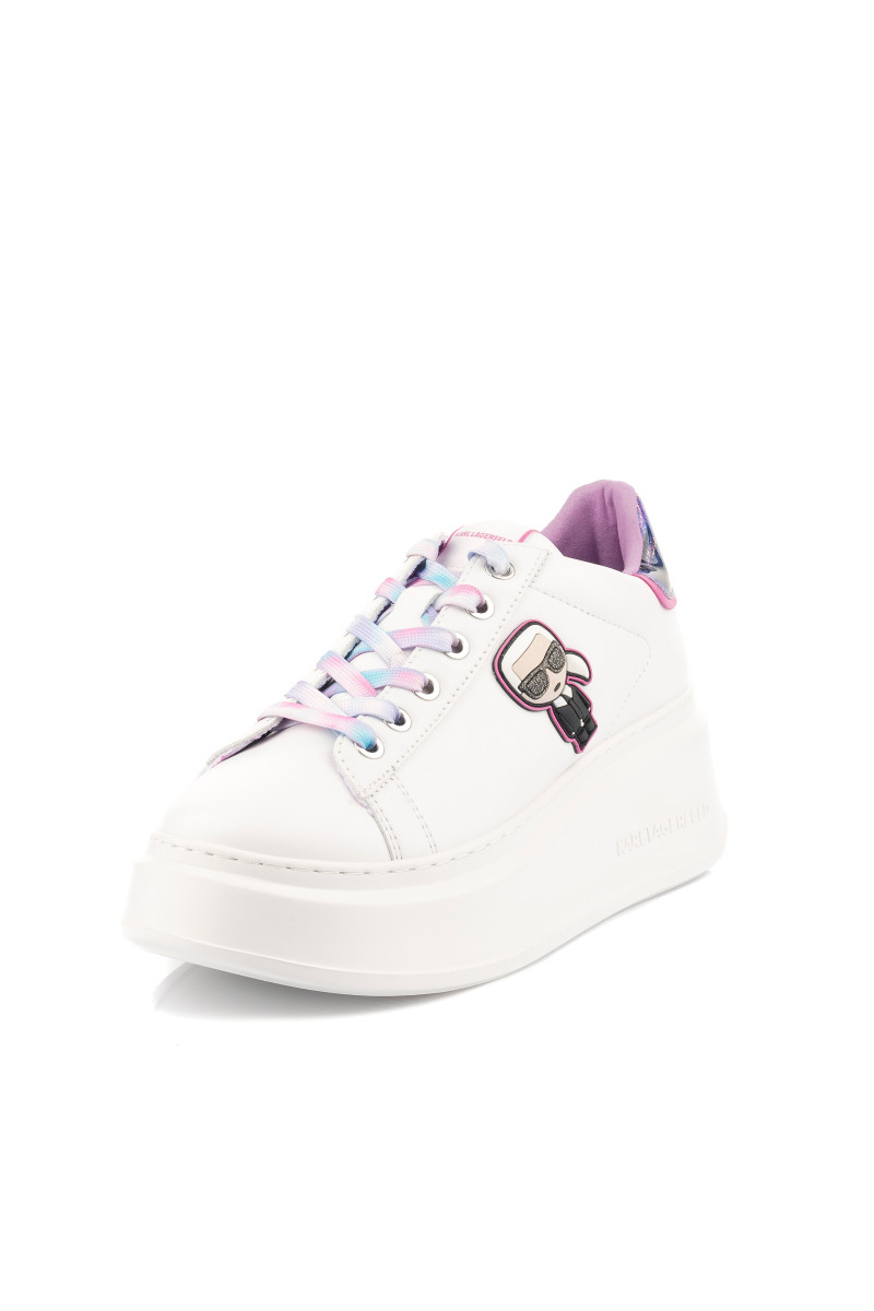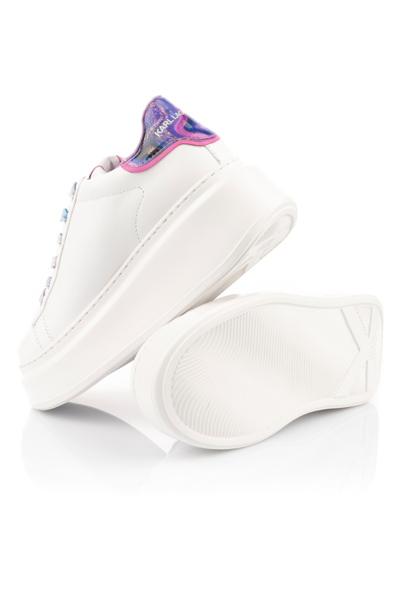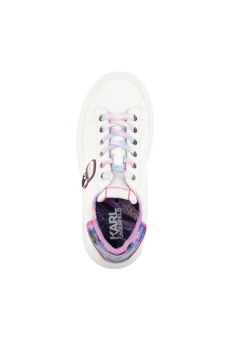 Kombinált felületű női bőr tornacipő, mely eredeti részleteivel és maximális kényelemérzetével nyeri el tetszését. A sokszínű változat kidolgozott dizájnjában kívül Karl ikonikus alakja, a sarkon pedig egy kontrasztos részlet dominál a KARL LAGERFELD logóval. Összetéveszthetetlenül stílusos lábbeli, amely tökéletesen kiegészíti szabadidős öltözékét.
