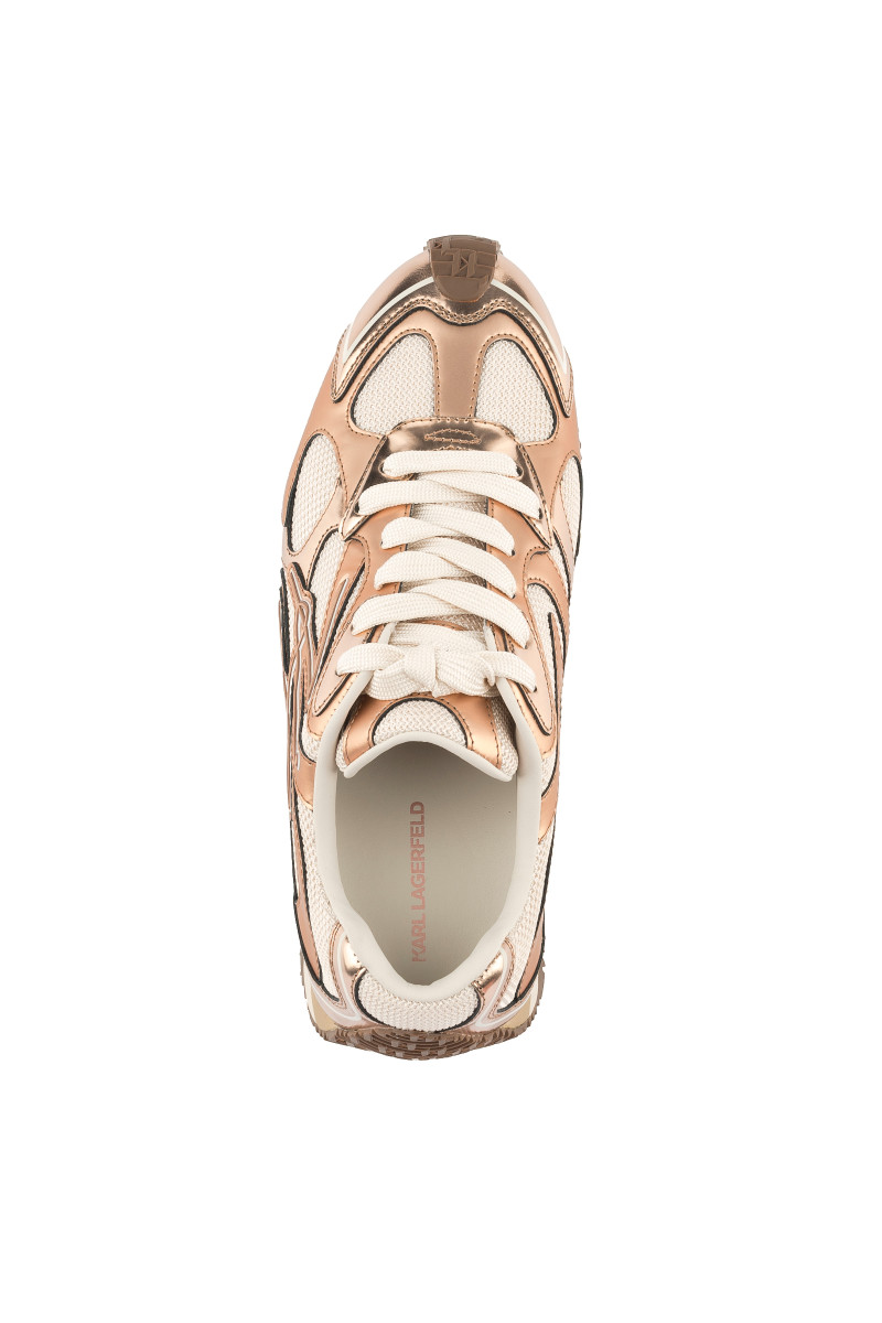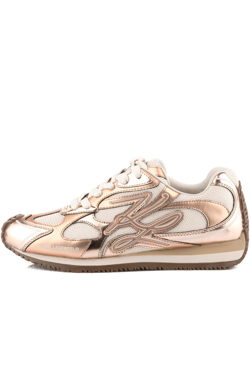 Női edzőcipő, amely kombinált anyagból készült és eredeti részleteivel, valamint sokoldalú felhasználhatóságával Önt is elvarázsolja majd. A sportos, ugyanakkor elegáns dizájnú darab tonális panelekkel van ellátva, amelyek lakkozott bőrből és hálós anyagból készültek. Alacsony, csíkos talprésszel és cipőfűzővel ellátott. A darabot a külső oldalon Karl Autograph logó díszíti. Rendkívül stílusos lábbeli, amely garantáltan feldobja majd megjelenését.