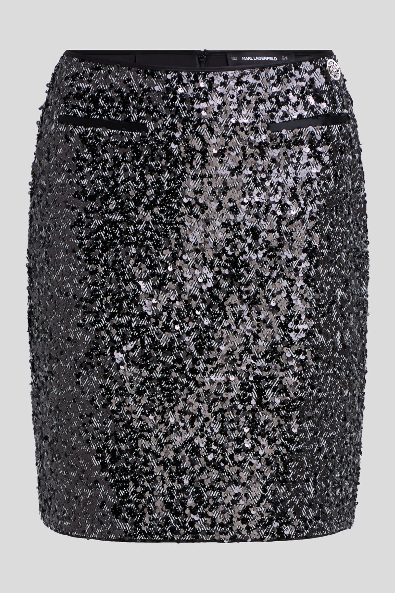 SZOKNYA KARL LAGERFELD EMBELLISHED TWEED SKIRT HERRINGBONE SEQUINS